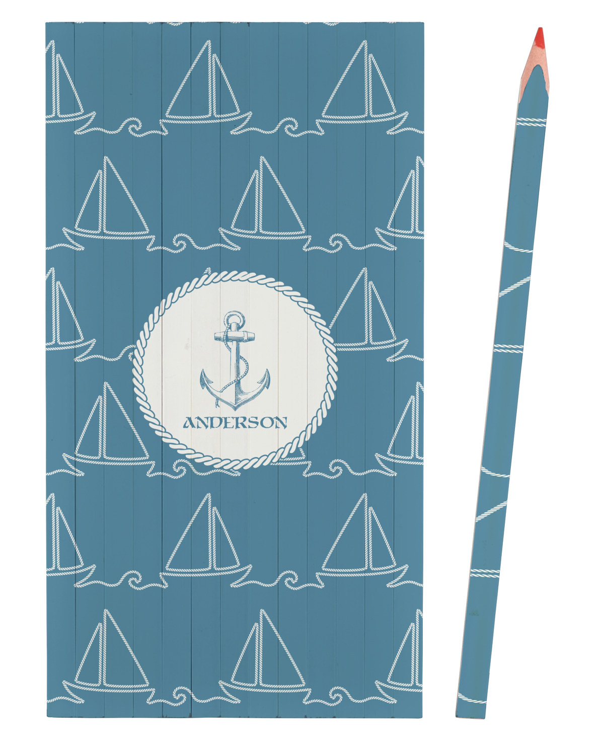 In the center of the design is a roped label and anchor. Put the personalization of your choice underneath.