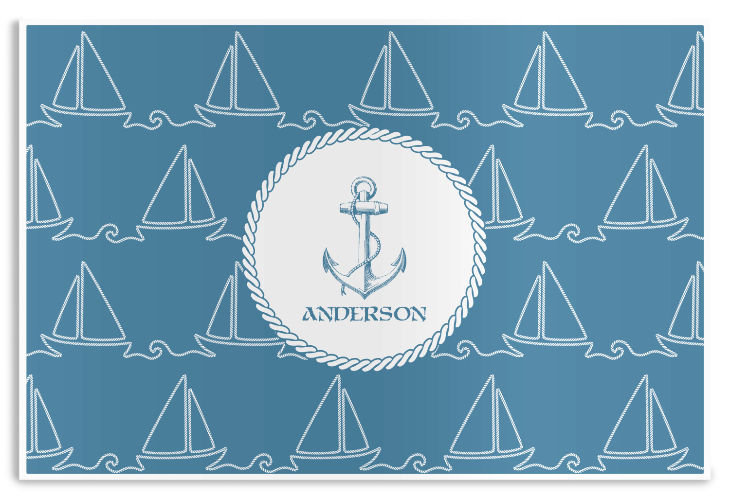 In the center of the design is a roped label and anchor. Put the personalization of your choice underneath.