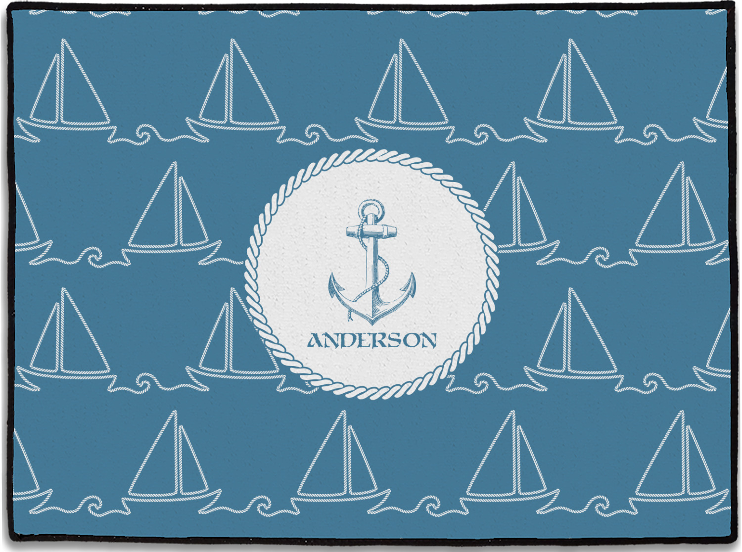 In the center of the design is a roped label and anchor. Put the personalization of your choice underneath.