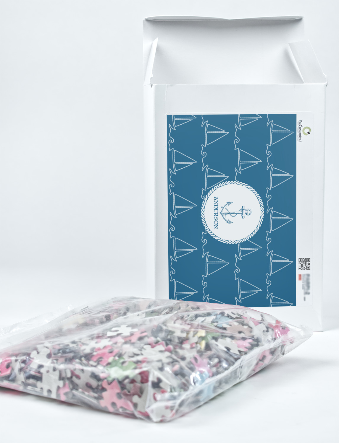 You can also upload your logo or art that you or your kids drew. To create more challenging jigsaw puzzles, you can create a pattern from with your logo or artwork. You can also add other elements such as text or personalization.