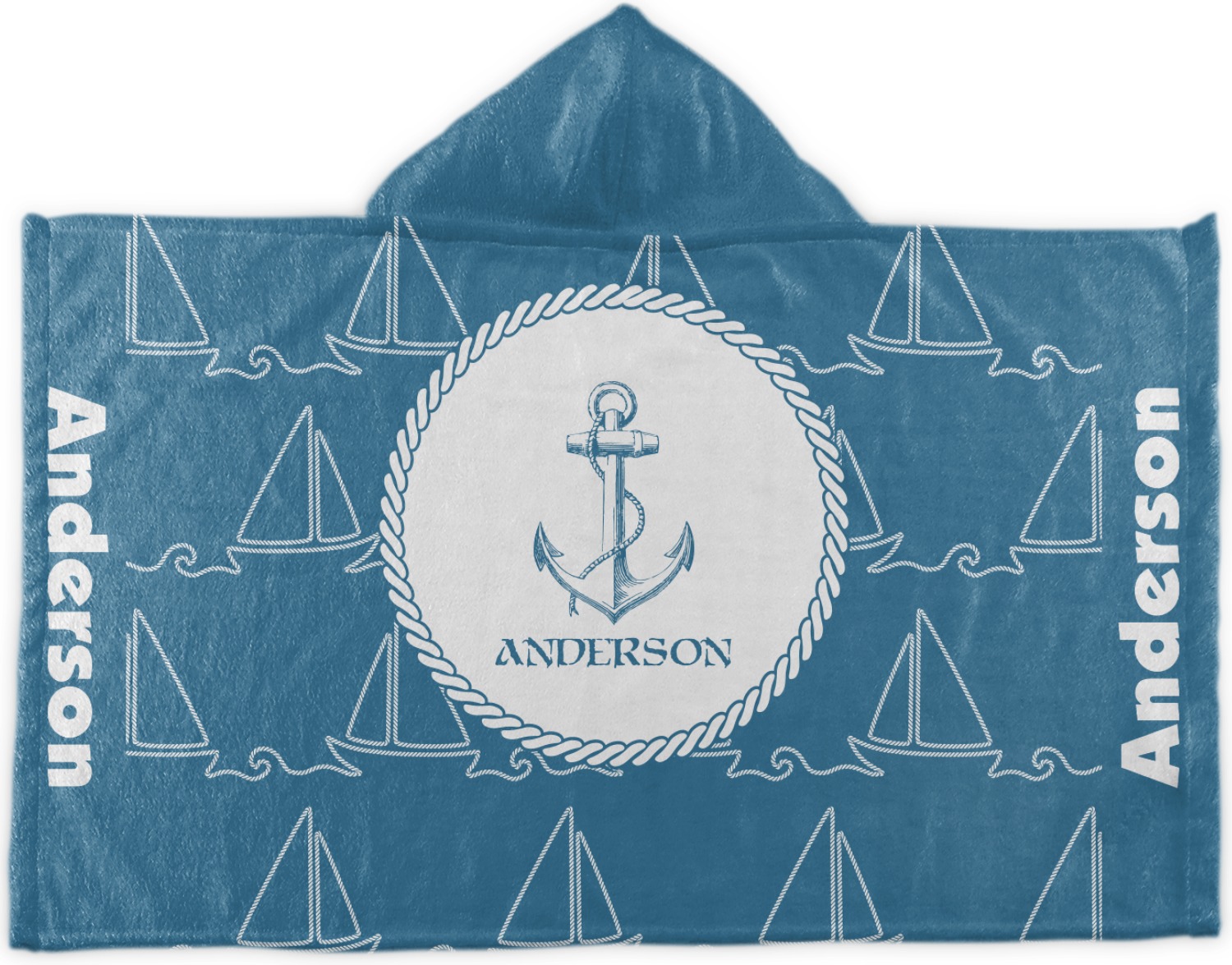 In the center of the design is a roped label and anchor. Put the personalization of your choice underneath.