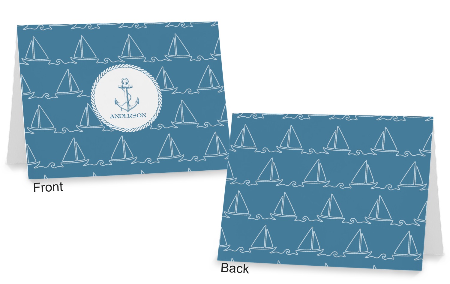 Our custom folded note cards are printed on premium 100lb. card stock and comes with white envelopes. The note card measure 5.5 by 4.25 inches and are blank on the inside for your handwritten message.