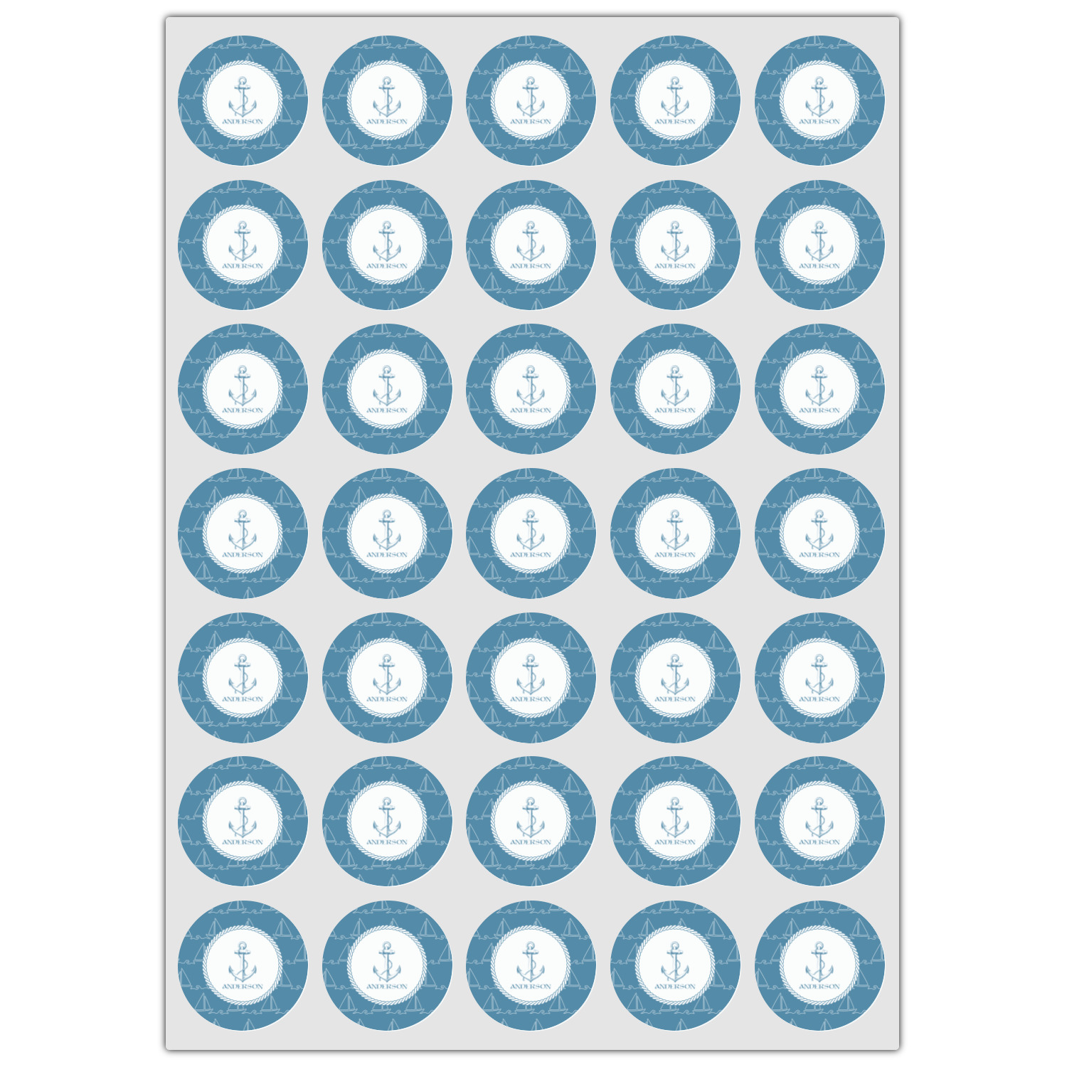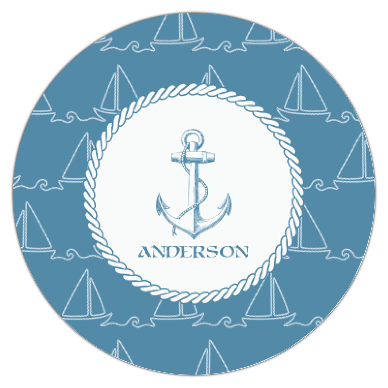 In the center of the design is a roped label and anchor. Put the personalization of your choice underneath.