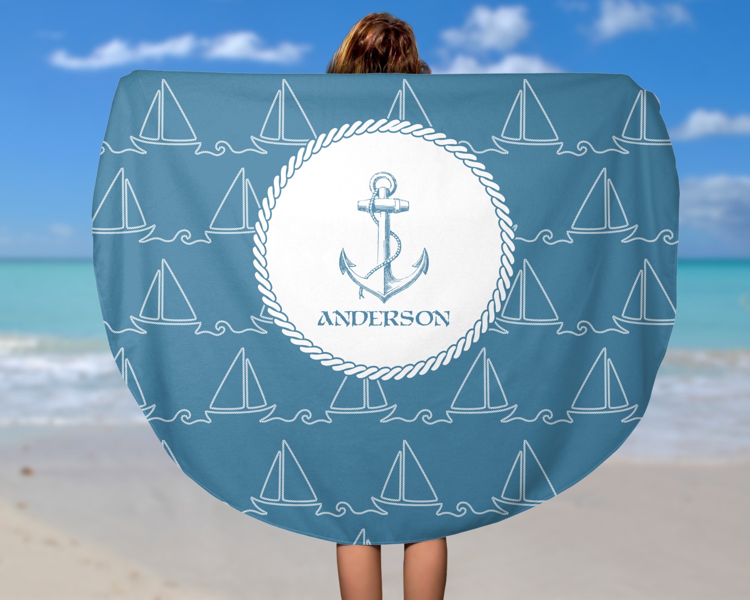 Think out of the box on your next beach, pool, or picnic day in style on your personalized round towel. This must have durable accessory is the perfect size for keeping you, and your possessions out of the sand. Sprawl out in the sun without getting your hands dirty, the unique round design allows for a full range of motion.