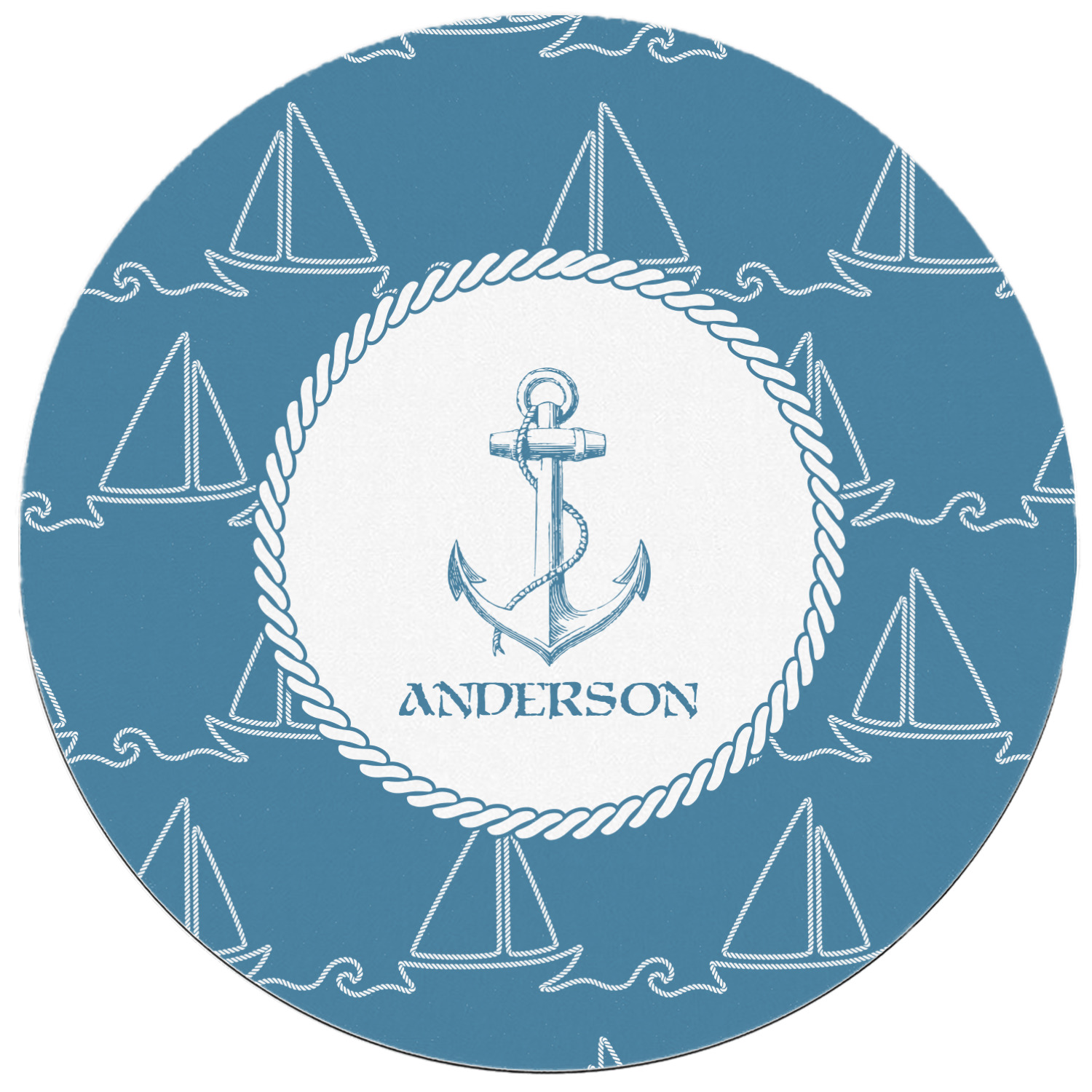 In the center of the design is a roped label and anchor. Put the personalization of your choice underneath.