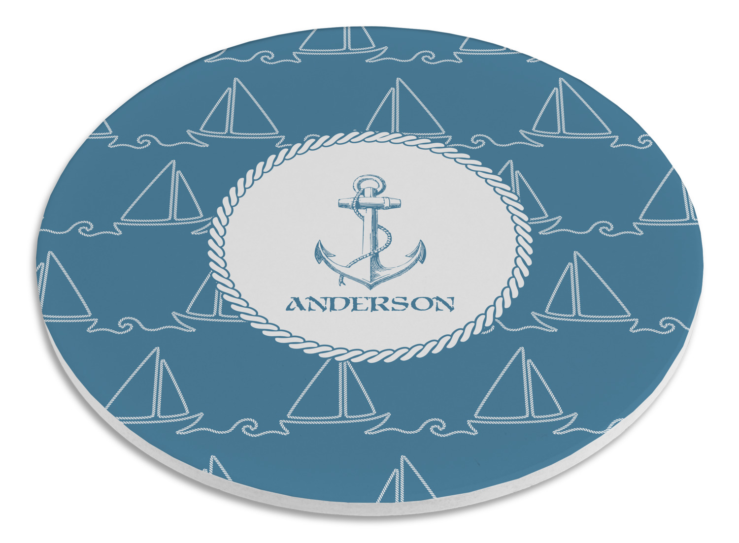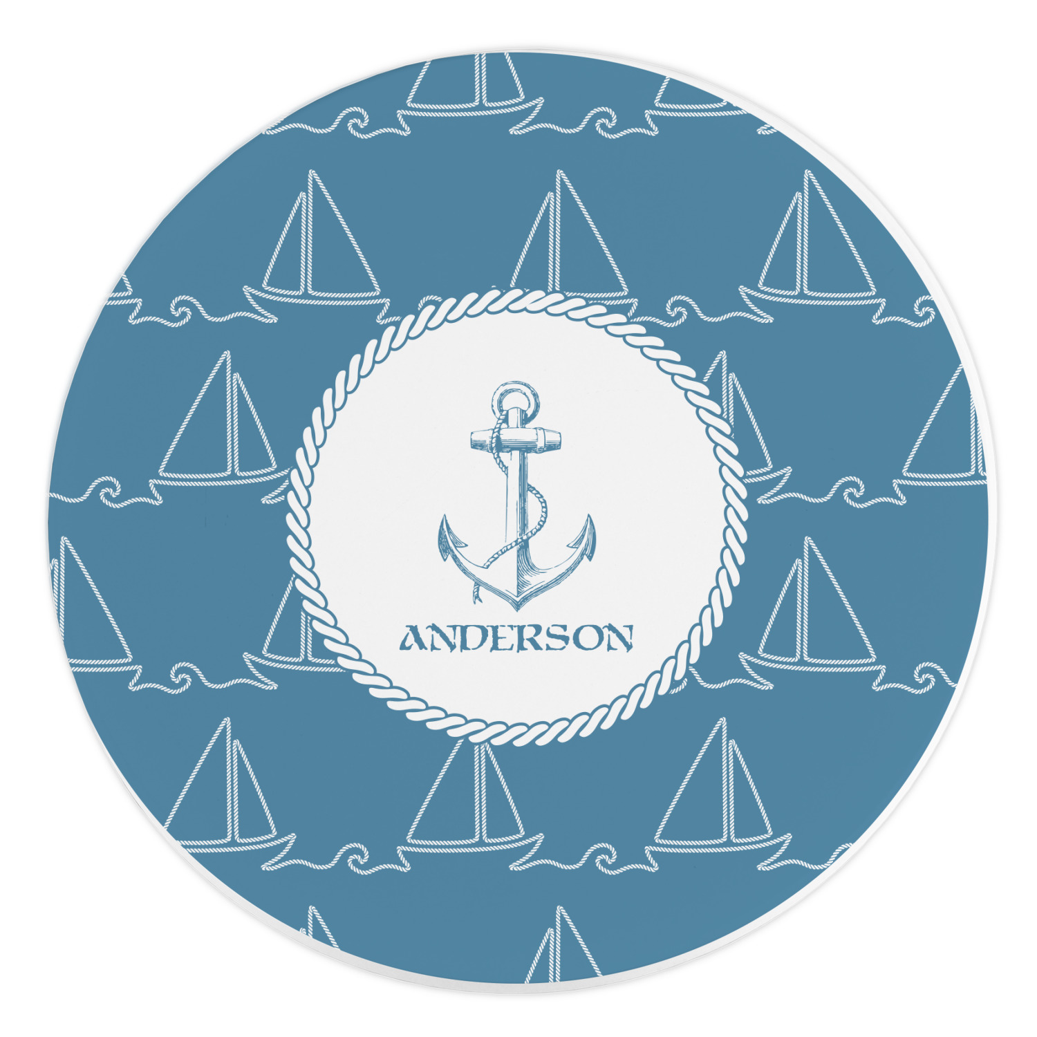 In the center of the design is a roped label and anchor. Put the personalization of your choice underneath.