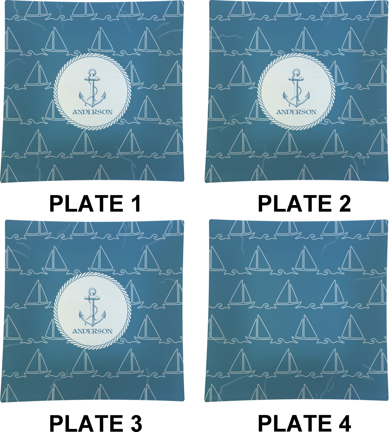 Sailboat Designs for Glass Square Lunch / Dinner Plates 9.5" - Set of 4