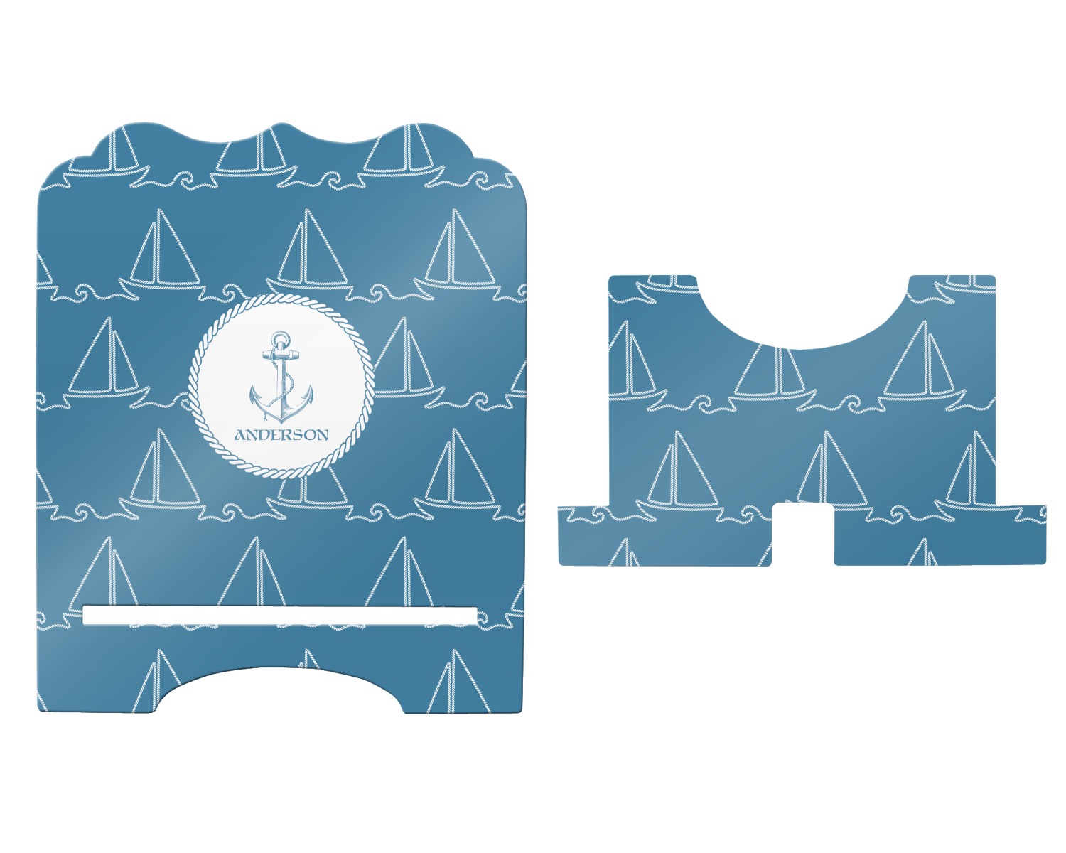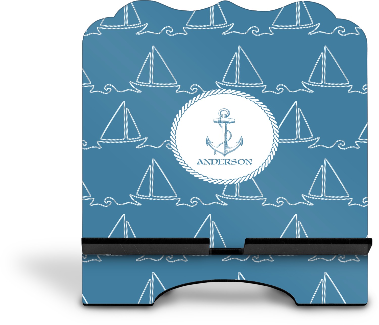 In the center of the design is a roped label and anchor. Put the personalization of your choice underneath.