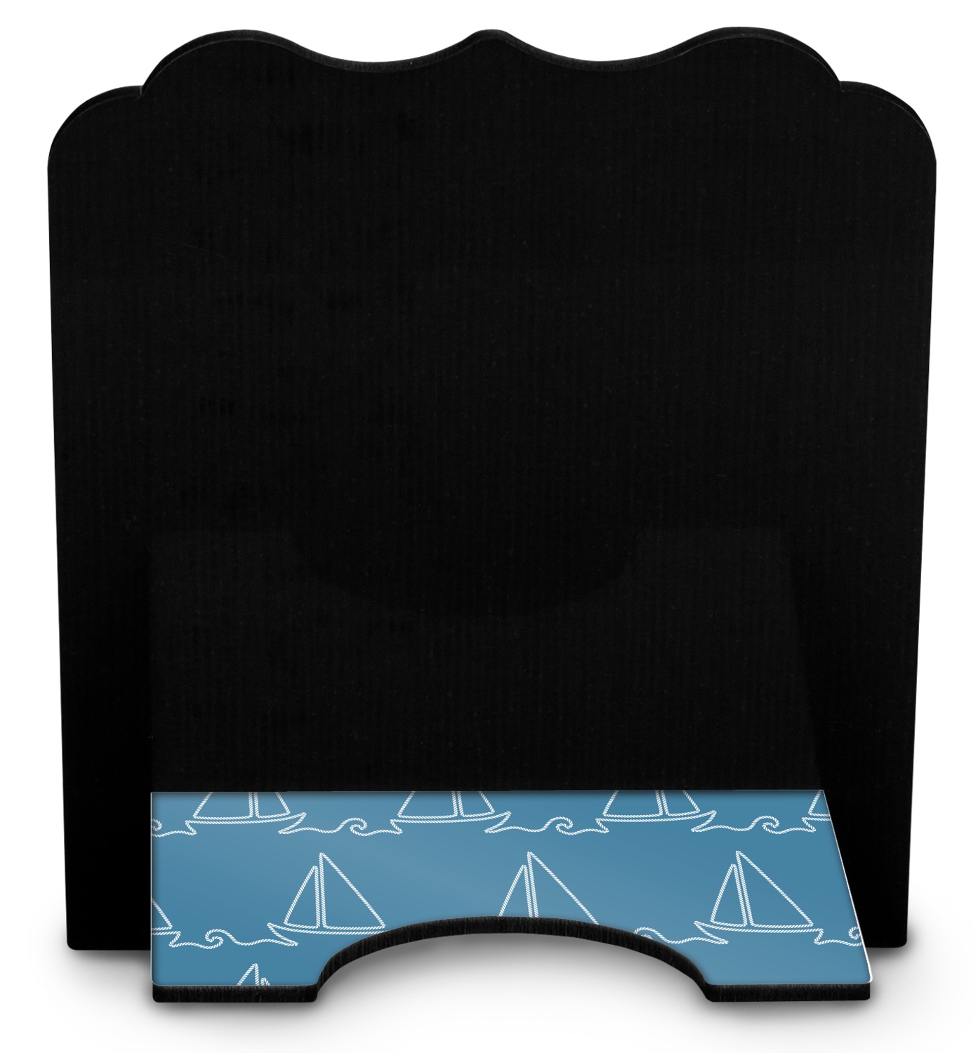 The stand is comprised of two hardboard pieces that fit snugly together and stabilize one another. The bottom part of the iPad stand supports your tablet, and has space for your tablets charger while in use. At 9.25" x 11.5", this tablet mount can support a device between the sizes of the iPad Pro and the iPad Mini 2. The uppermost part of the stand features a decorative, curved edge for a classy, suave appearance. We print your customization atop the face of the stand, in vibrant color. The remaining sides are colored a sleek black.
