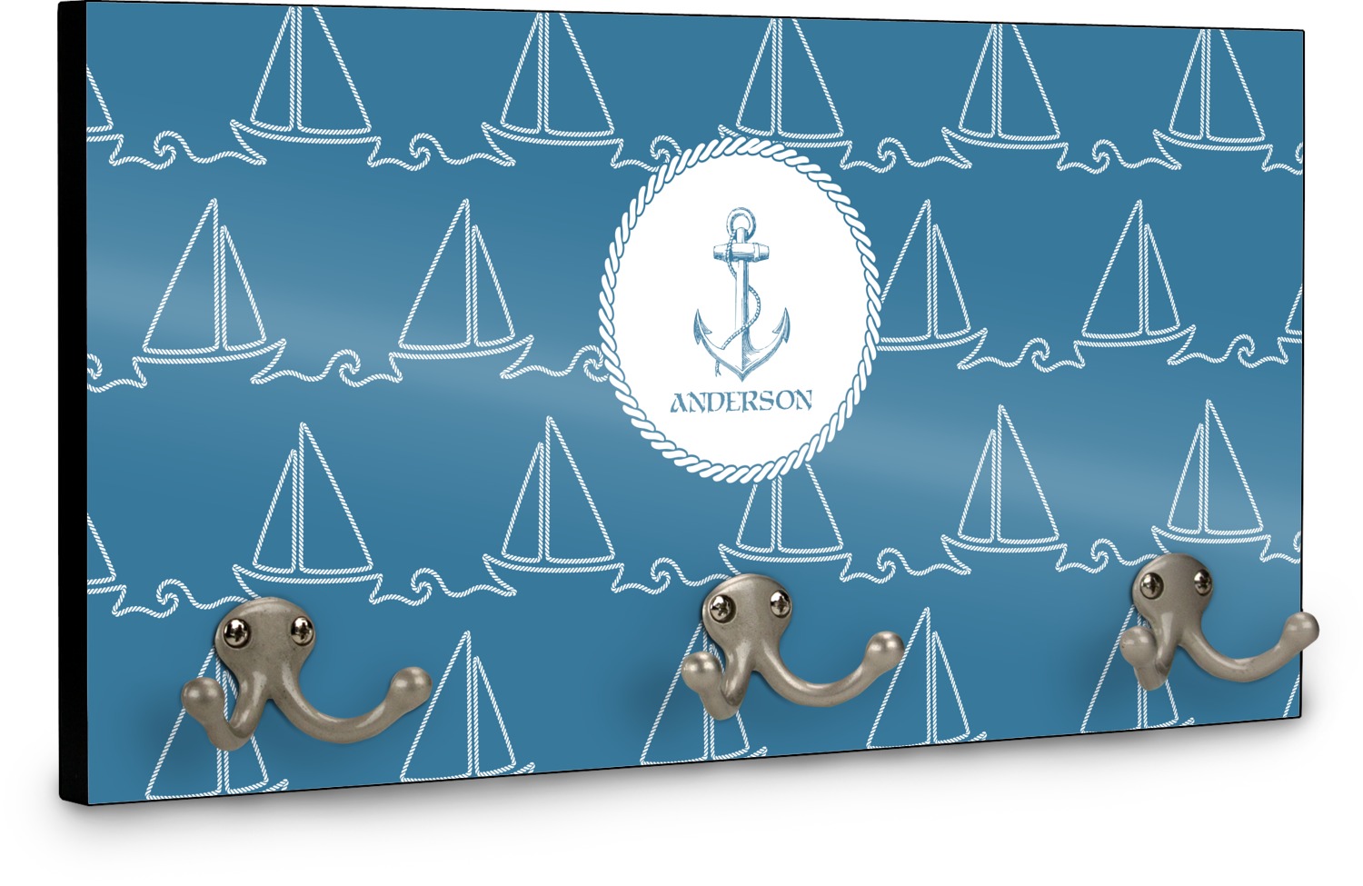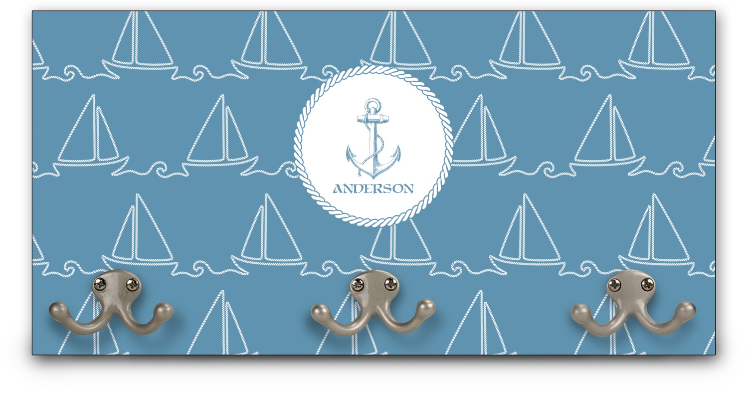 This coat rack is the perfect way to add some personality to your wall or entryway. The board is made of a strong maple that is approximately 16" x 8". The three 2-prong hooks are a sturdy metal that have three screws attaching them to the board. Your design is printed right onto the front of the board while the back and sides are a simple black.