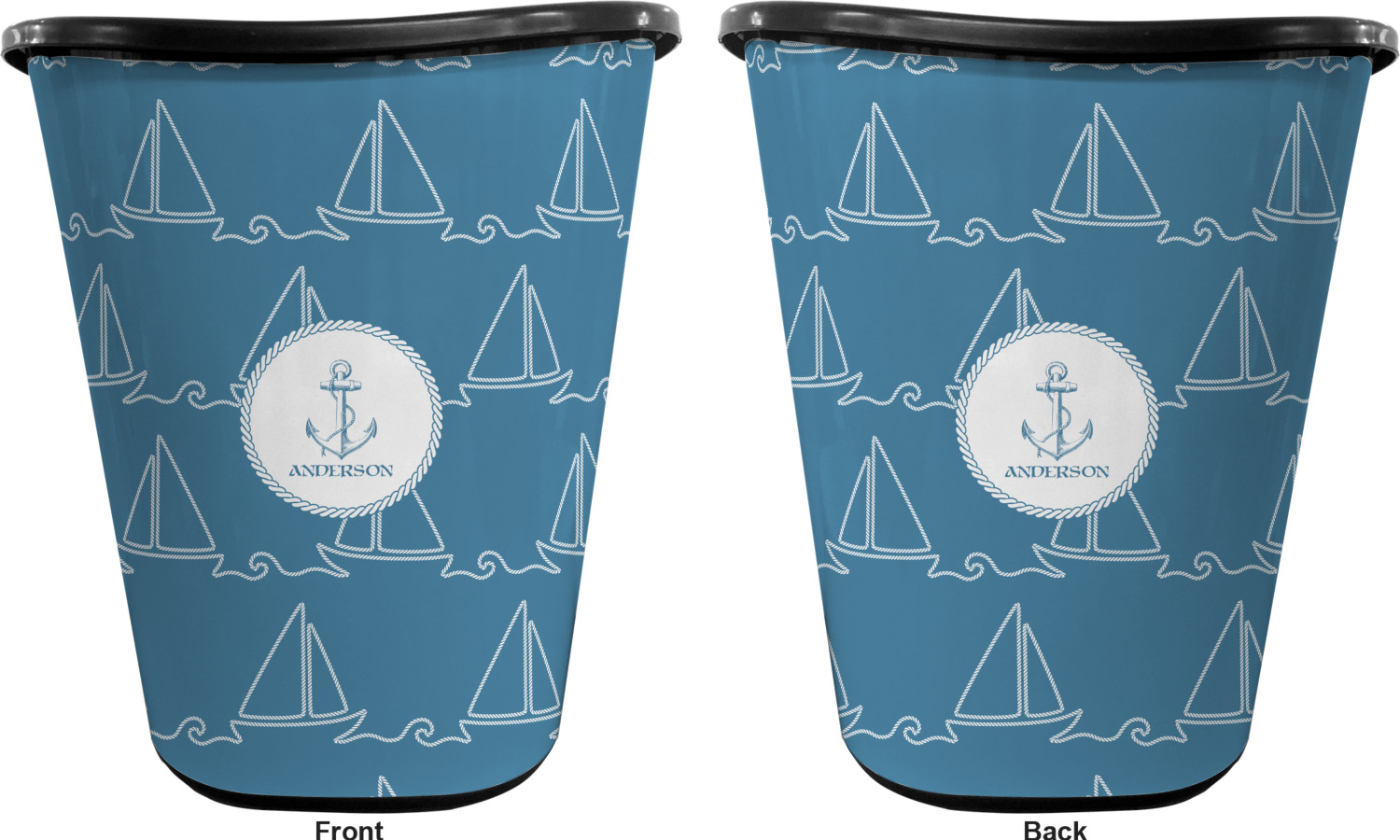 Sailboat Designs for Waste Baskets - Double-Sided - Black