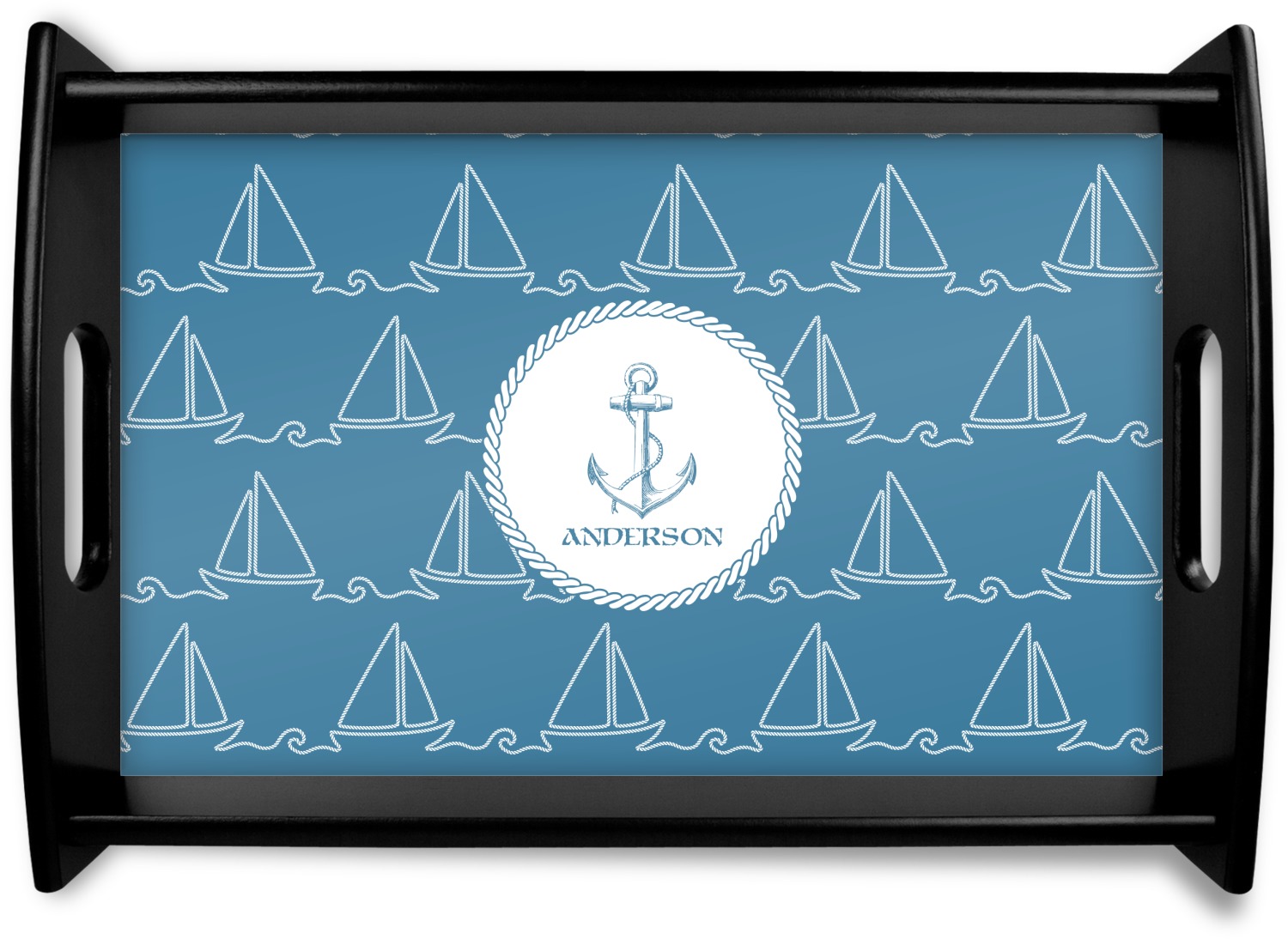 In the center of the design is a roped label and anchor. Put the personalization of your choice underneath.