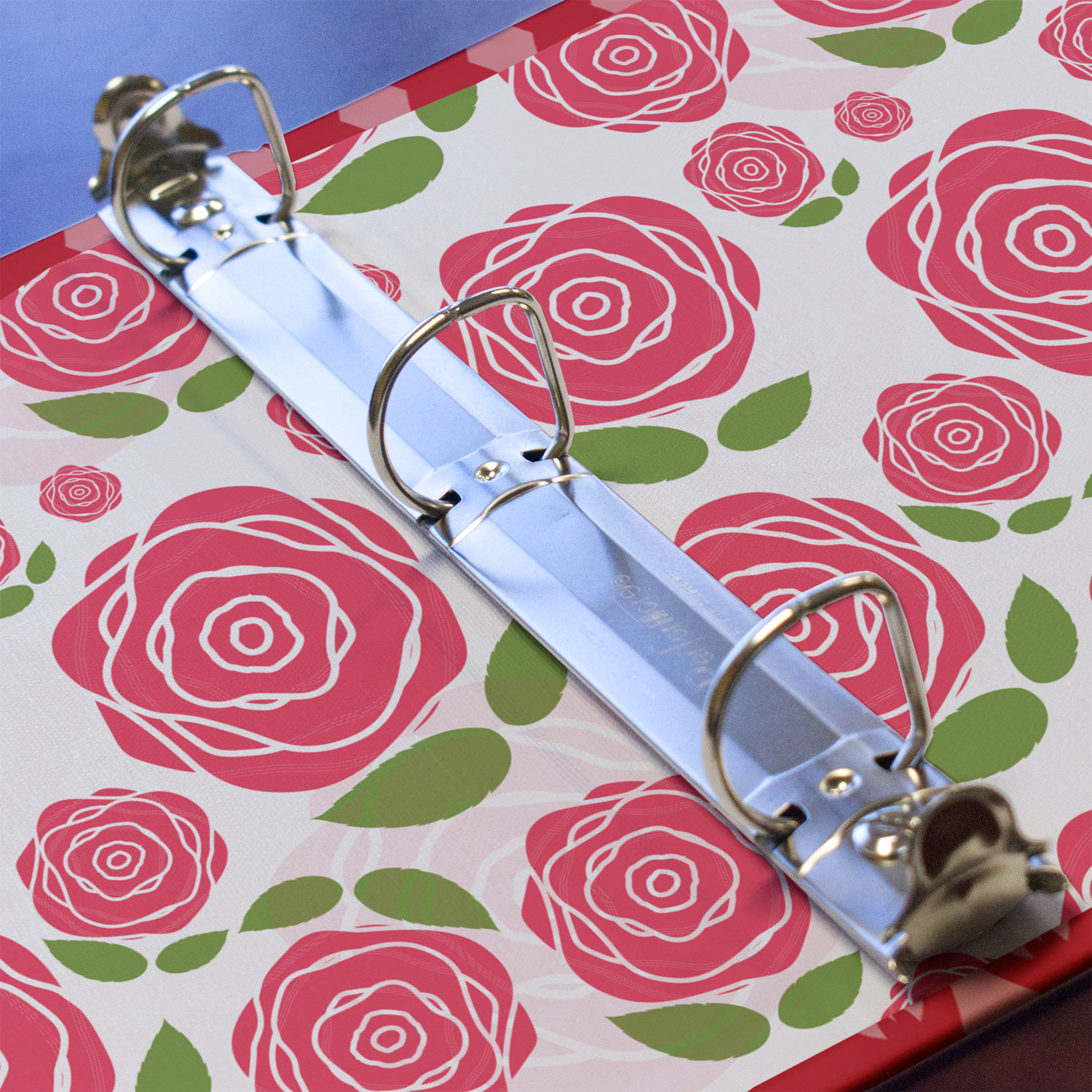 Made from a sturdy cardboard base with a full high quality canvas textured vinyl wrap with the design of your choice. Unlike our standard 3-ring binder with the full wrap design your artwork wraps from the front and back and into the inside of the binder.