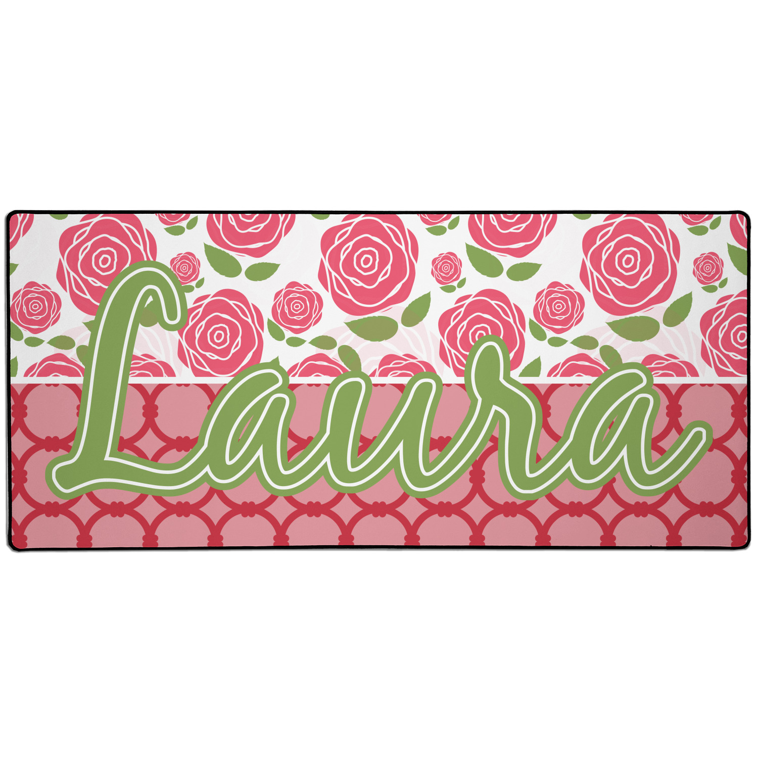 For our two pattern layout design, we chose to pair the rose pattern with our connected circles tone on tone design. We chose to personalize with just a name in one of our popular fonts (Black Jack) and we put a double stroke on the name.