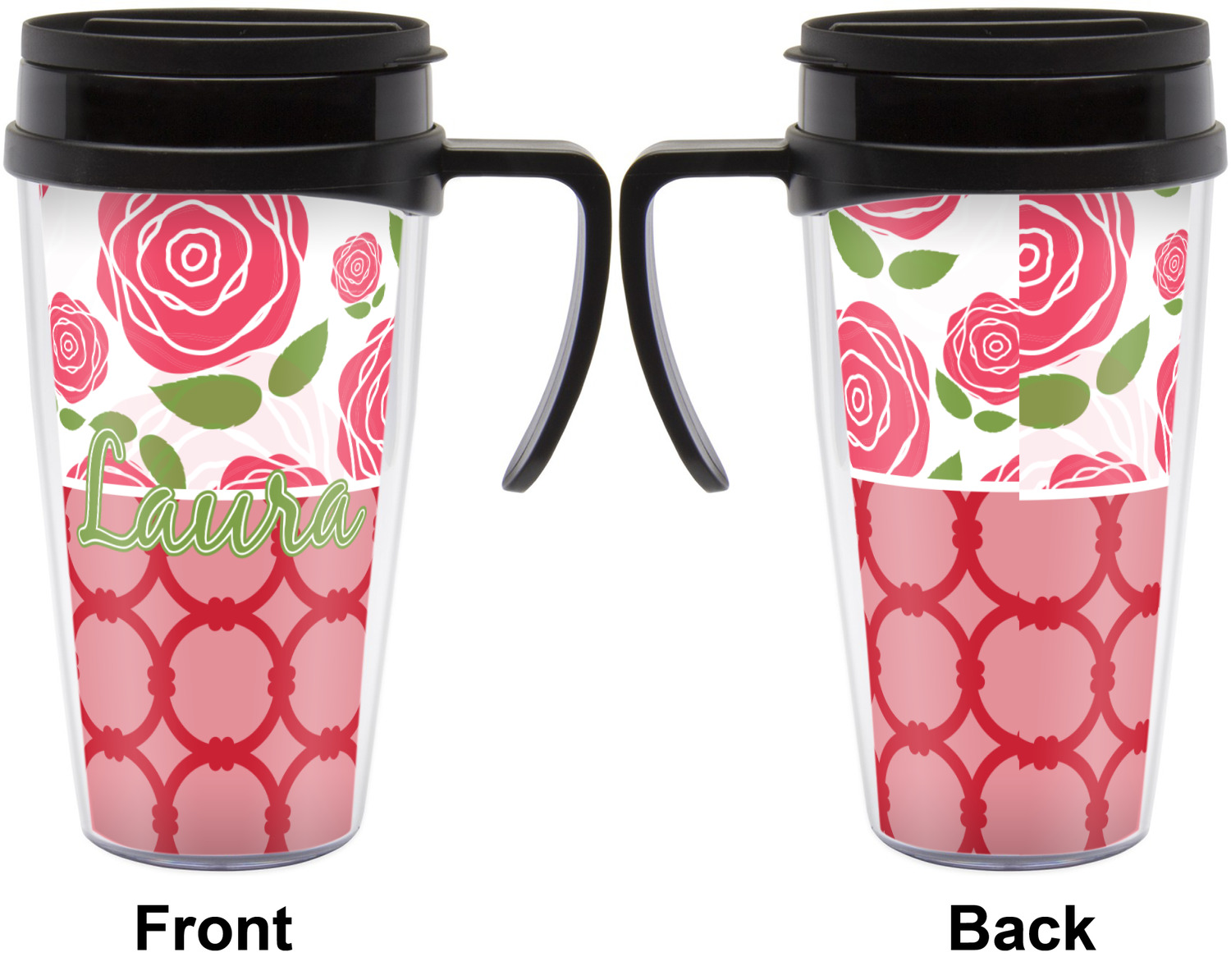 These thermal mugs are free of BPA, and insulated, to keep your drinks hot or cold. The black, snap on lid and the slider for sipping allows you to conveniently sip your drink without constantly worrying about a disastrous spill. We offer this mug with and without a handle, to better suit your needs. Each custom thermal mug holds up to 16 ounces of liquid and displays your customization on all sides on premium gloss media inserts.