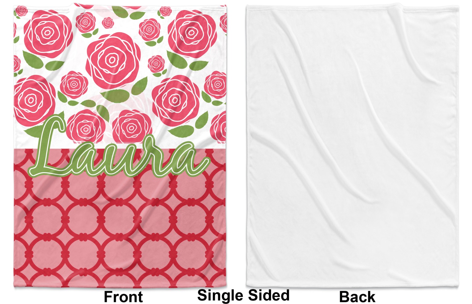 For our two pattern layout design, we chose to pair the rose pattern with our connected circles tone on tone design. We chose to personalize with just a name in one of our popular fonts (Black Jack) and we put a double stroke on the name.