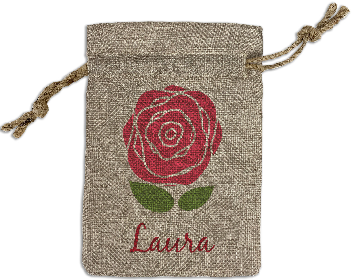 We sell our Burlap Gift Bags in 3 variant sized bags. Made with burlap polyester, each personalized bag can be secured with a twine drawstring pull. Your custom design is available to print on one side or both sides - completely up to you! The sizes of the bags measure approximately 4.5" x 6.5" for the smallest size, 6.5" x 8.0" for the medium size, and 6.5" x 13.5" for the large-sized bag.