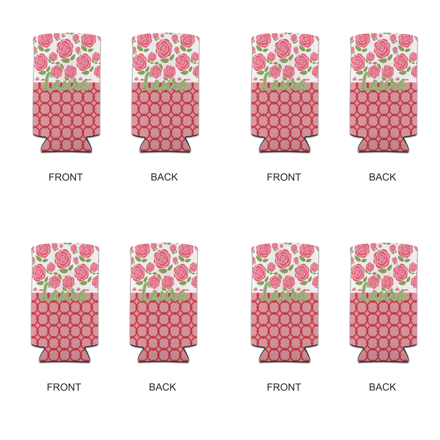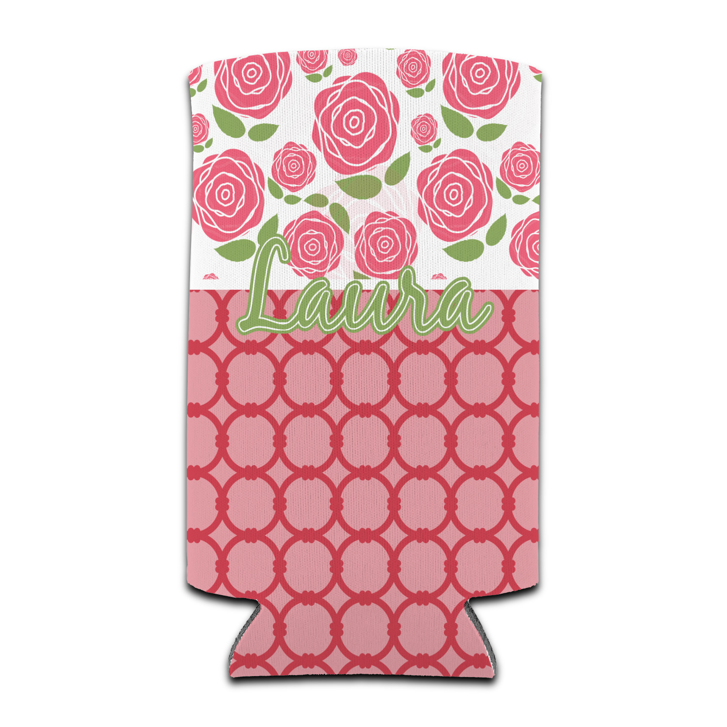 For our two pattern layout design, we chose to pair the rose pattern with our connected circles tone on tone design. We chose to personalize with just a name in one of our popular fonts (Black Jack) and we put a double stroke on the name.