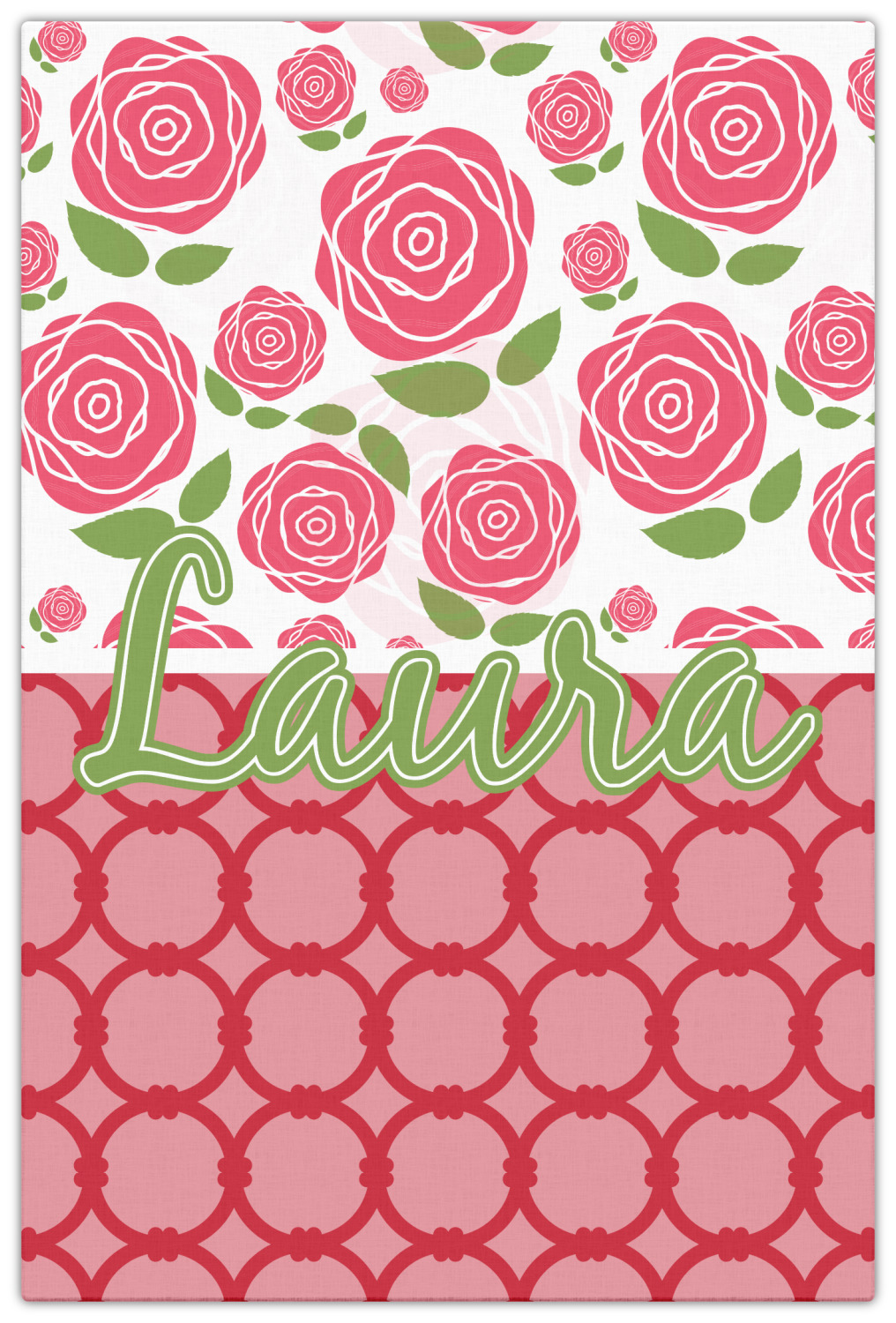 For our two pattern layout design, we chose to pair the rose pattern with our connected circles tone on tone design. We chose to personalize with just a name in one of our popular fonts (Black Jack) and we put a double stroke on the name.