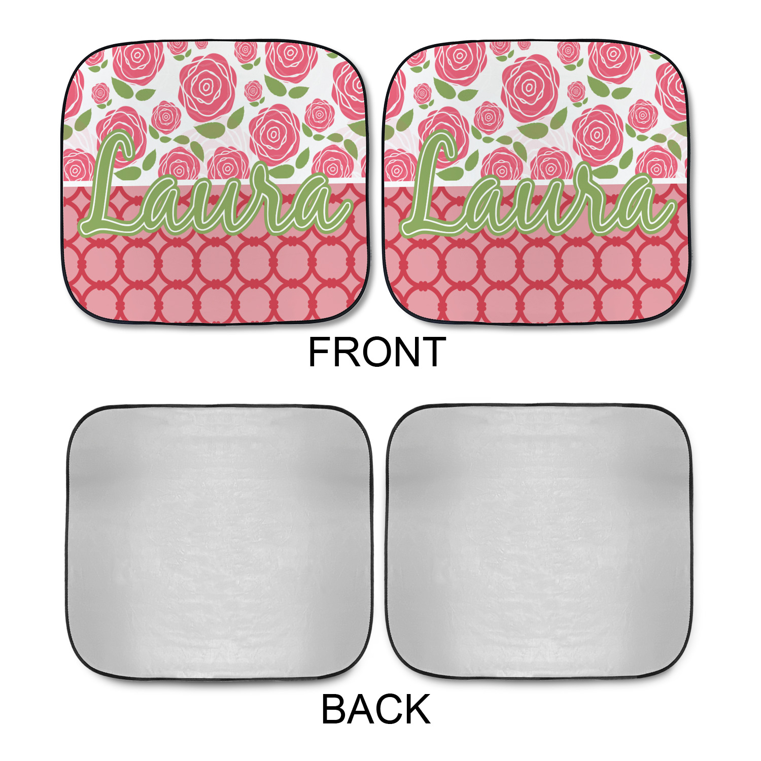 Sold as a pair and with your design printed on the front and the back having a reflective silver material these are sure to reduce the temperature of the inside of your car and keep UV rays from prematurely wearing your dash and interior panels. You have the option of both being the same design or design them separately for a unique look that will have all of your friends asking where you got your car windshield sun shades.