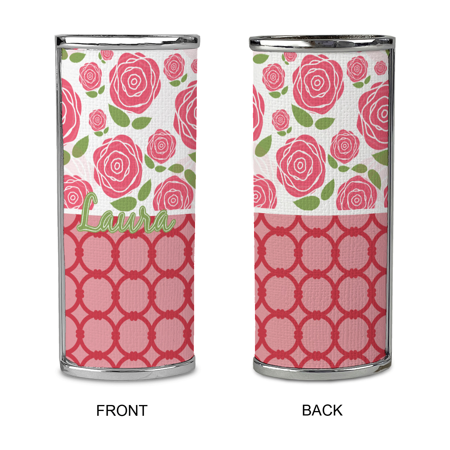 For our two pattern layout design, we chose to pair the rose pattern with our connected circles tone on tone design. We chose to personalize with just a name in one of our popular fonts (Black Jack) and we put a double stroke on the name.