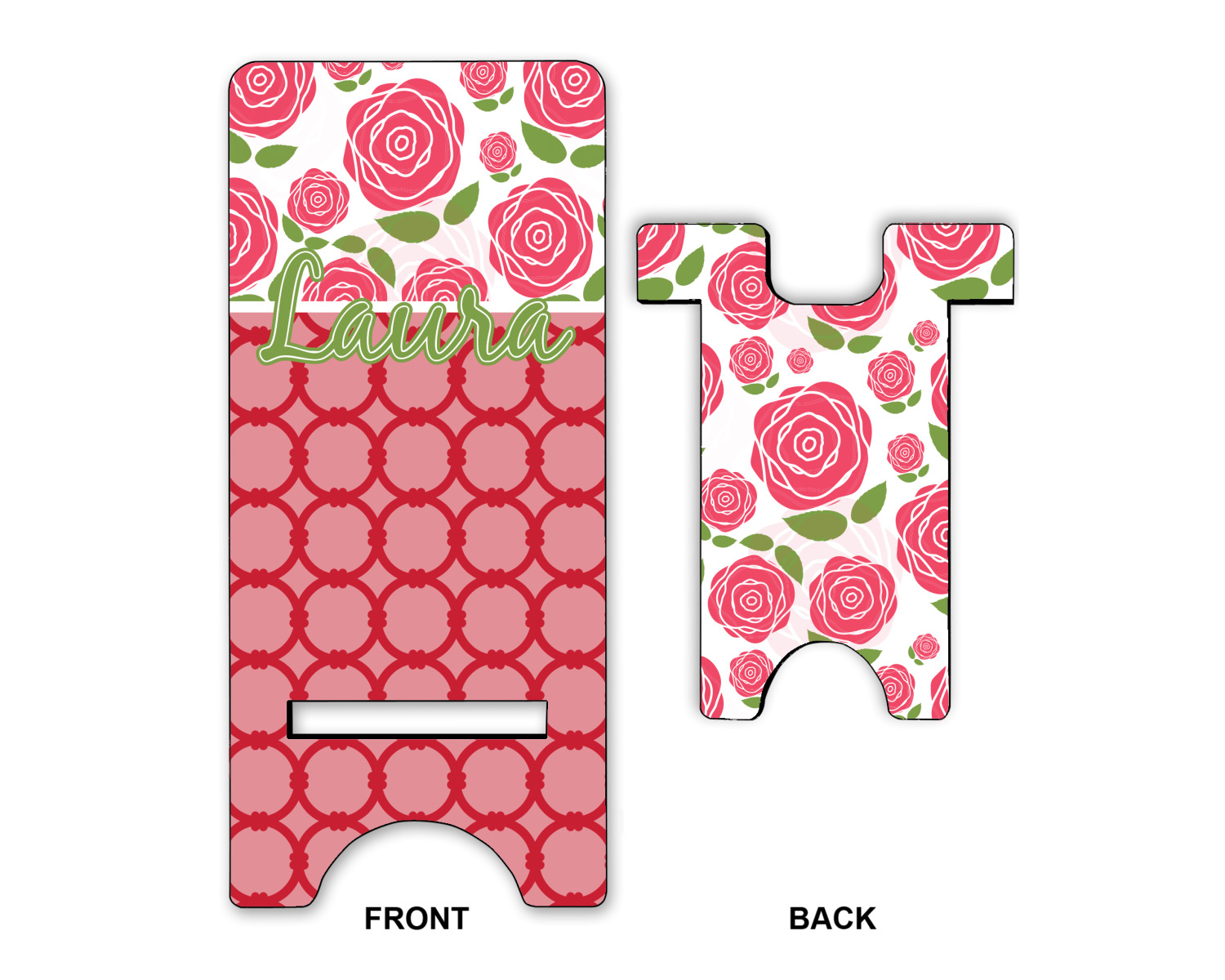 For our two pattern layout design, we chose to pair the rose pattern with our connected circles tone on tone design. We chose to personalize with just a name in one of our popular fonts (Black Jack) and we put a double stroke on the name.