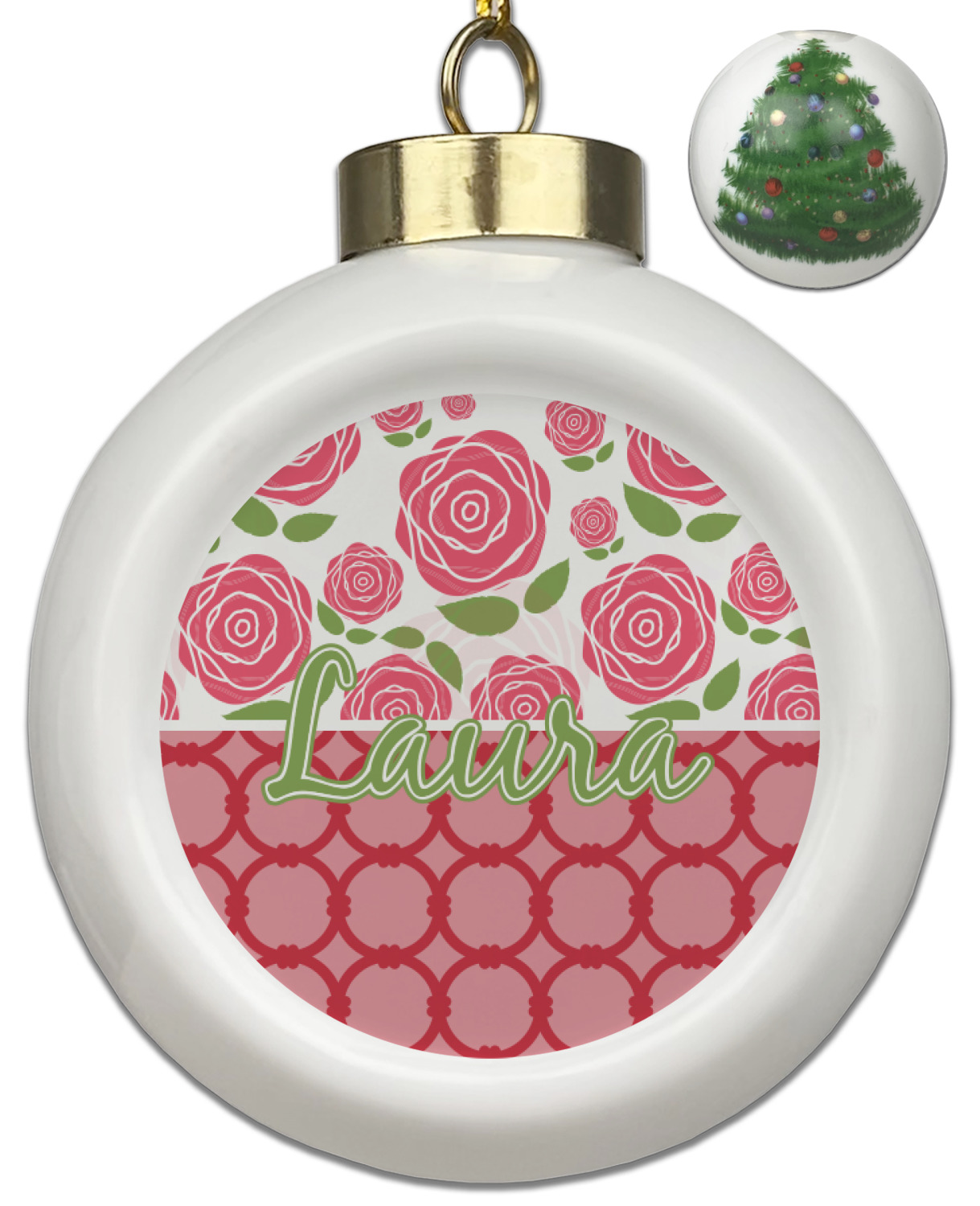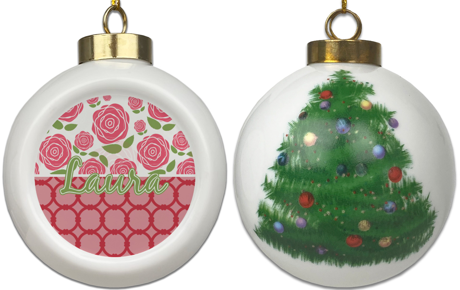 Our Christmas ornaments are a unique ceramic ball shape with a twist as it has a flat face to display your custom design! Select from one of our two design types - Christmas Tree or Poinsettia Garland - to adorn the curved back of your personal design. Each ornament measures 3H x 2.5W x 2D accompanied with a gold string accent for finishing touches to hang on your beautiful Christmas tree!