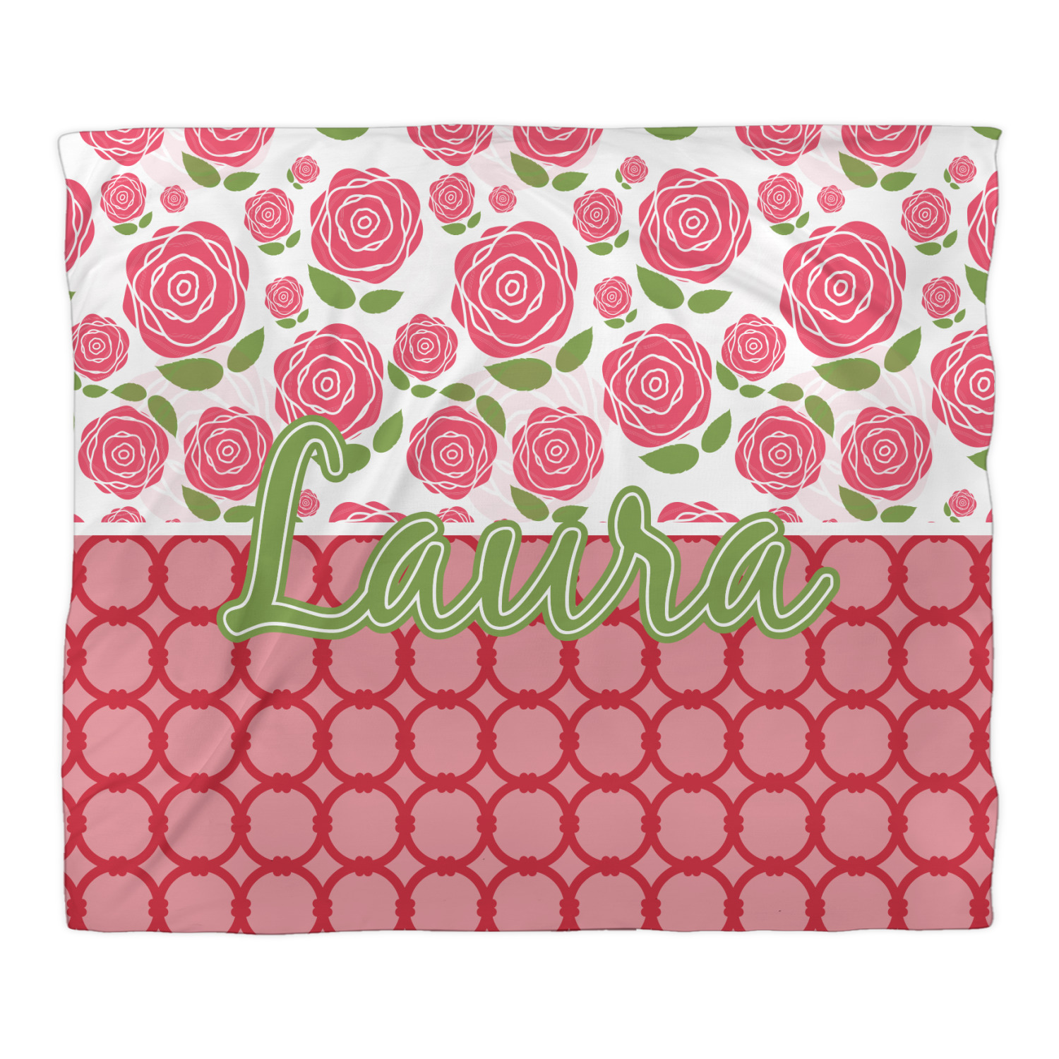 For our two pattern layout design, we chose to pair the rose pattern with our connected circles tone on tone design. We chose to personalize with just a name in one of our popular fonts (Black Jack) and we put a double stroke on the name.