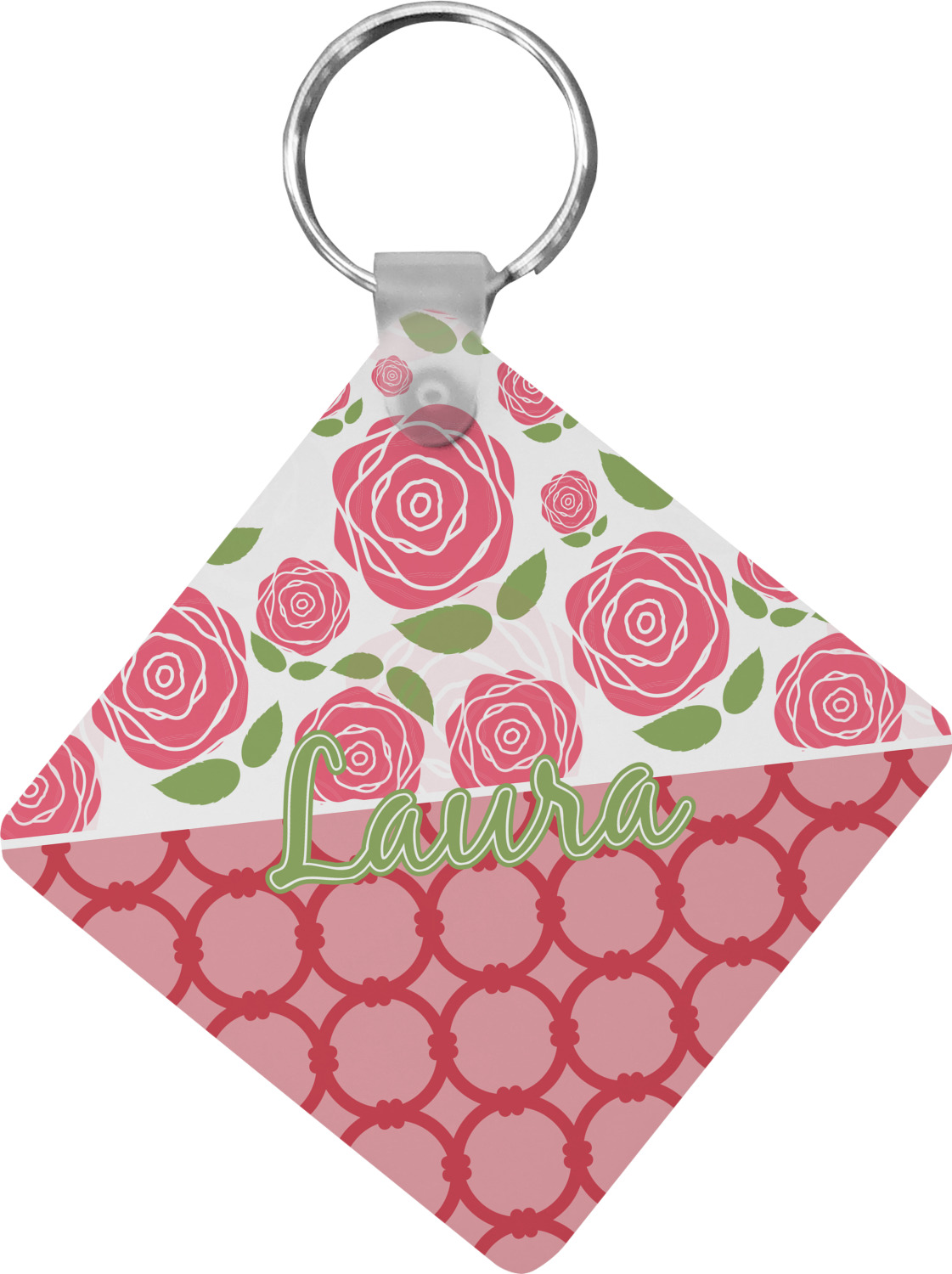 Our personalized keychains attach to the included metal, split key ring with a plastic, removable snap. Since a metal ring is included with your purchase, you have the liberty to keep your keys together on the ring, with or without your unique keychain. We offer this keychain in three different shapes: circle, heart, or diamond. We print your personalized design(s) on both sides of the key chain, and the surface has a glossy, reflective finish that only emphasizes your design. Each keychain is approximately 2.25 by 2.25 inches.