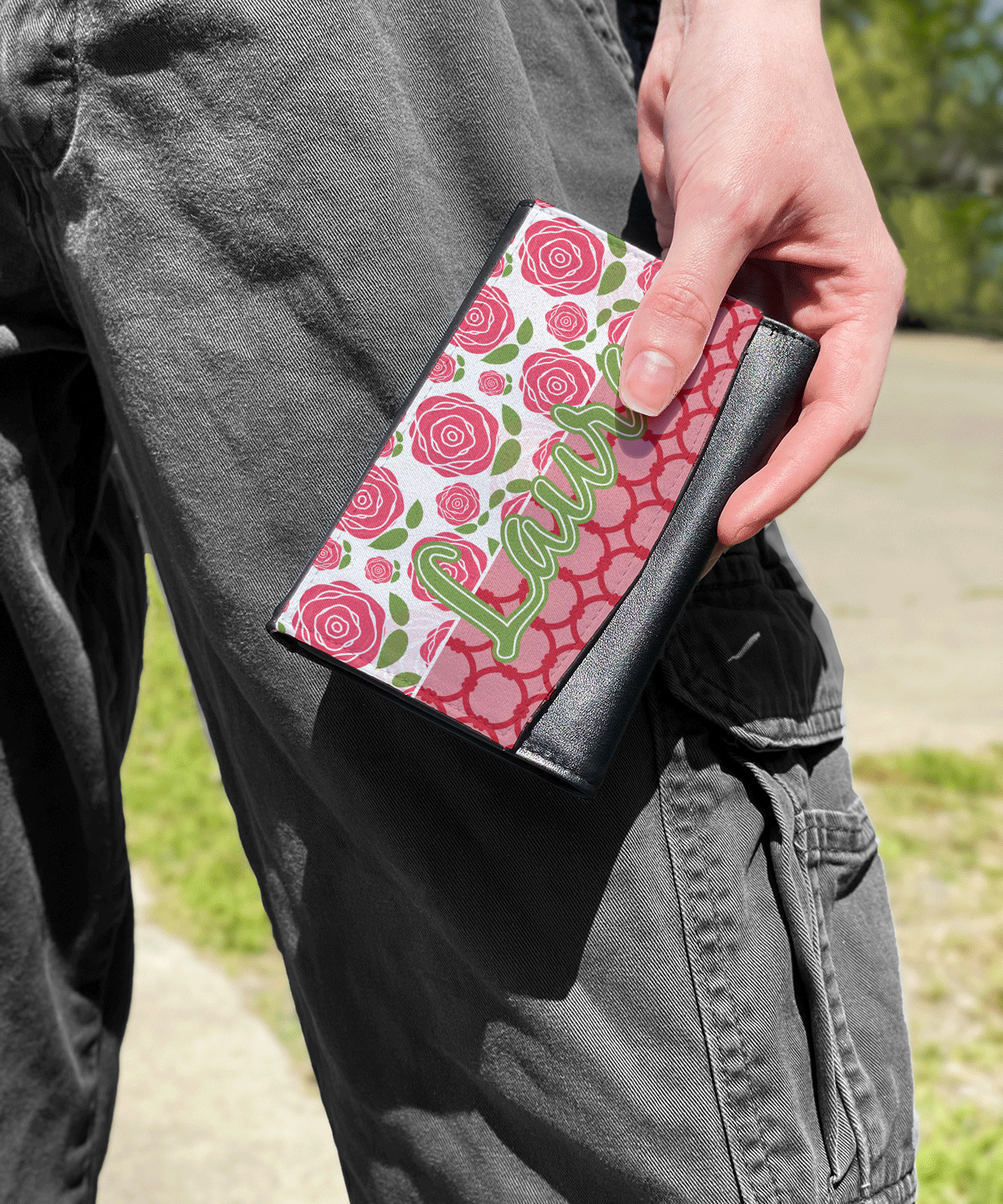 The compact size of this wallet - 5.5in wide, 3.5in tall and 0.75in thick when folded - makes it perfect to hold in hand and small enough to fit in a clutch or a normal size purse. The outside flap is customized with your choice of artwork and closes with a snap closure - with two different snaps to allow it to be adjusted when storing more items - to securely fasten the flap.