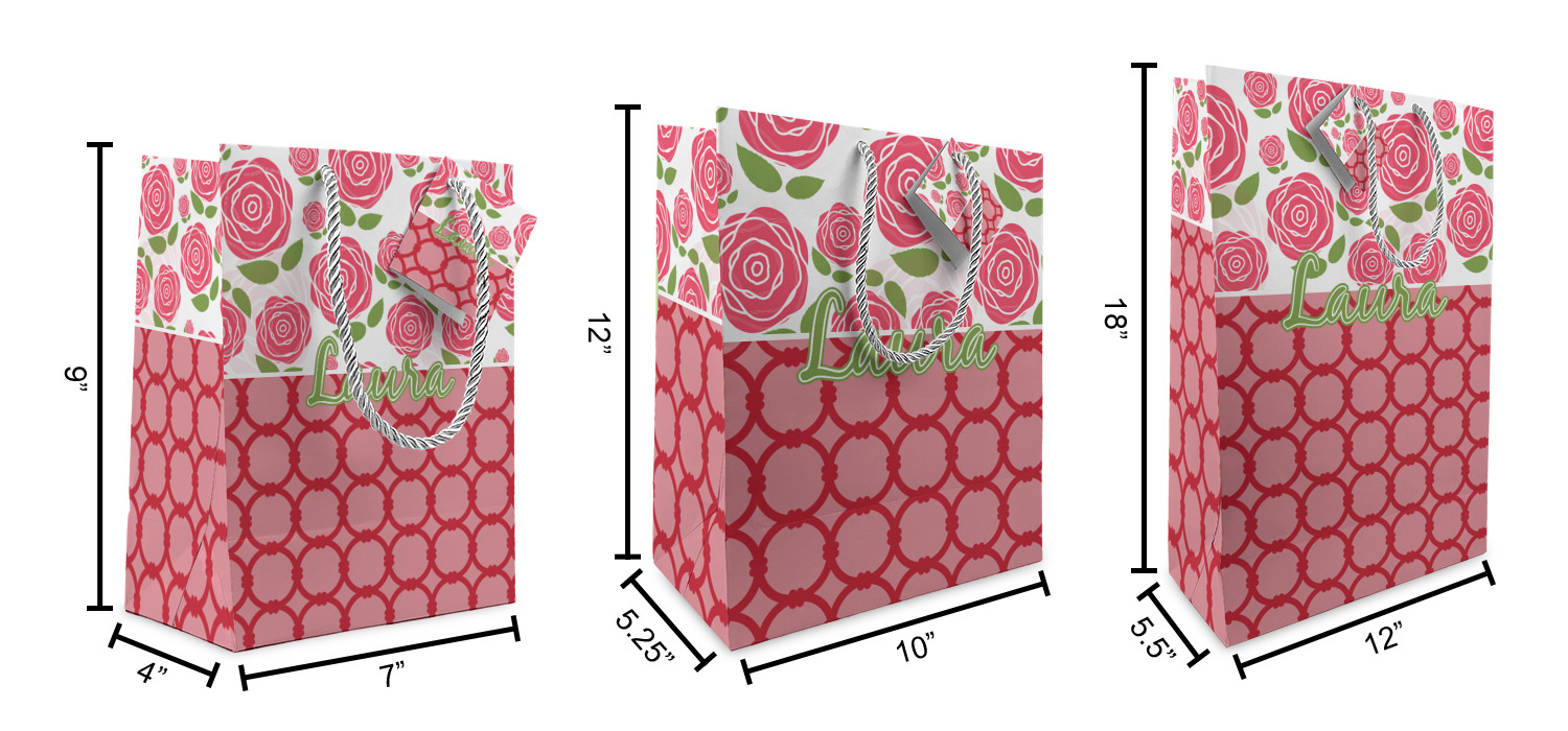These custom gift bags come in your choice of 3 sizes. Their dimensions are below:
