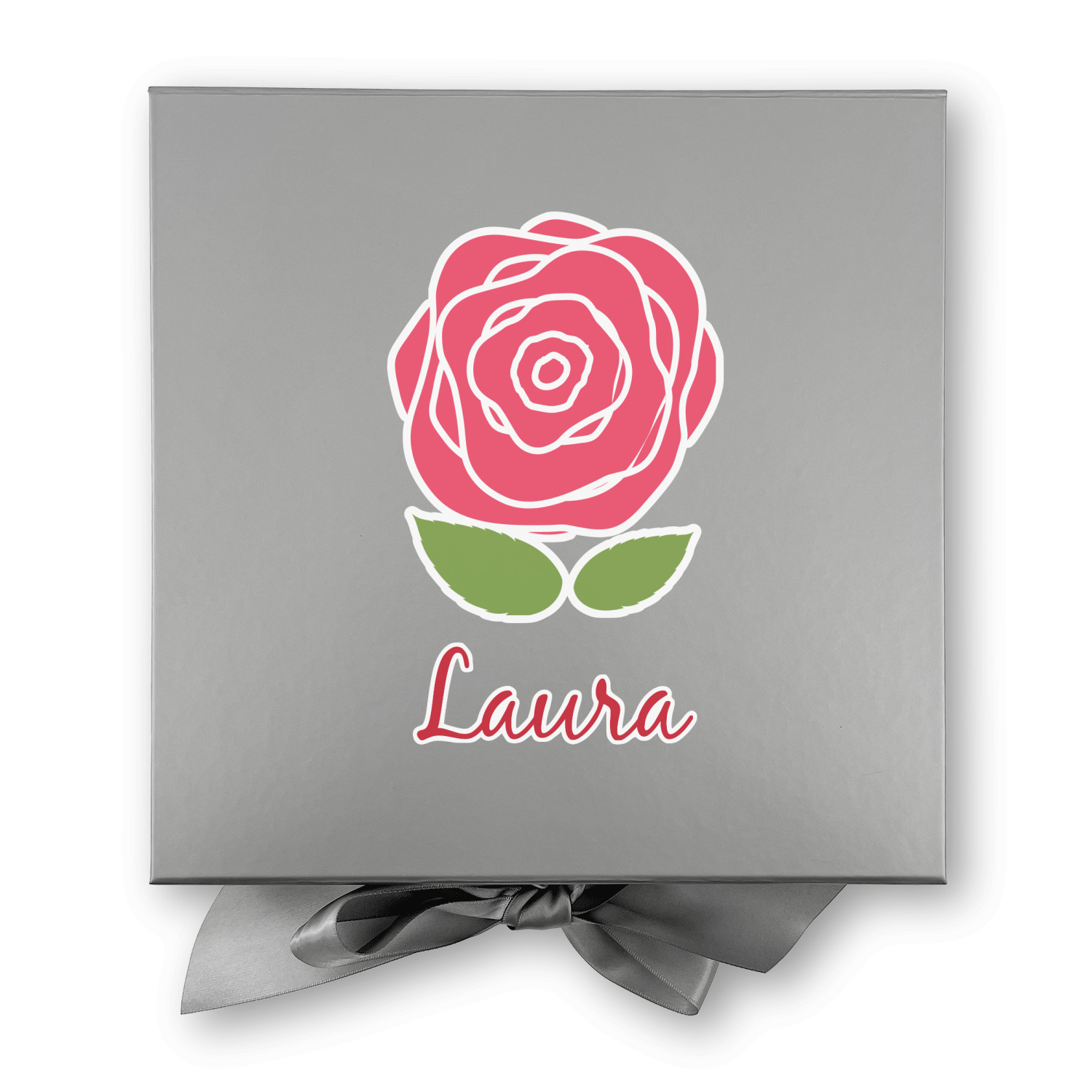 Design your own using our design library and we will print your artwork onto the lid of the gift box. When the box is closed the ribbons can be tied to secure the lid and add to the elegant look of these gift boxes.