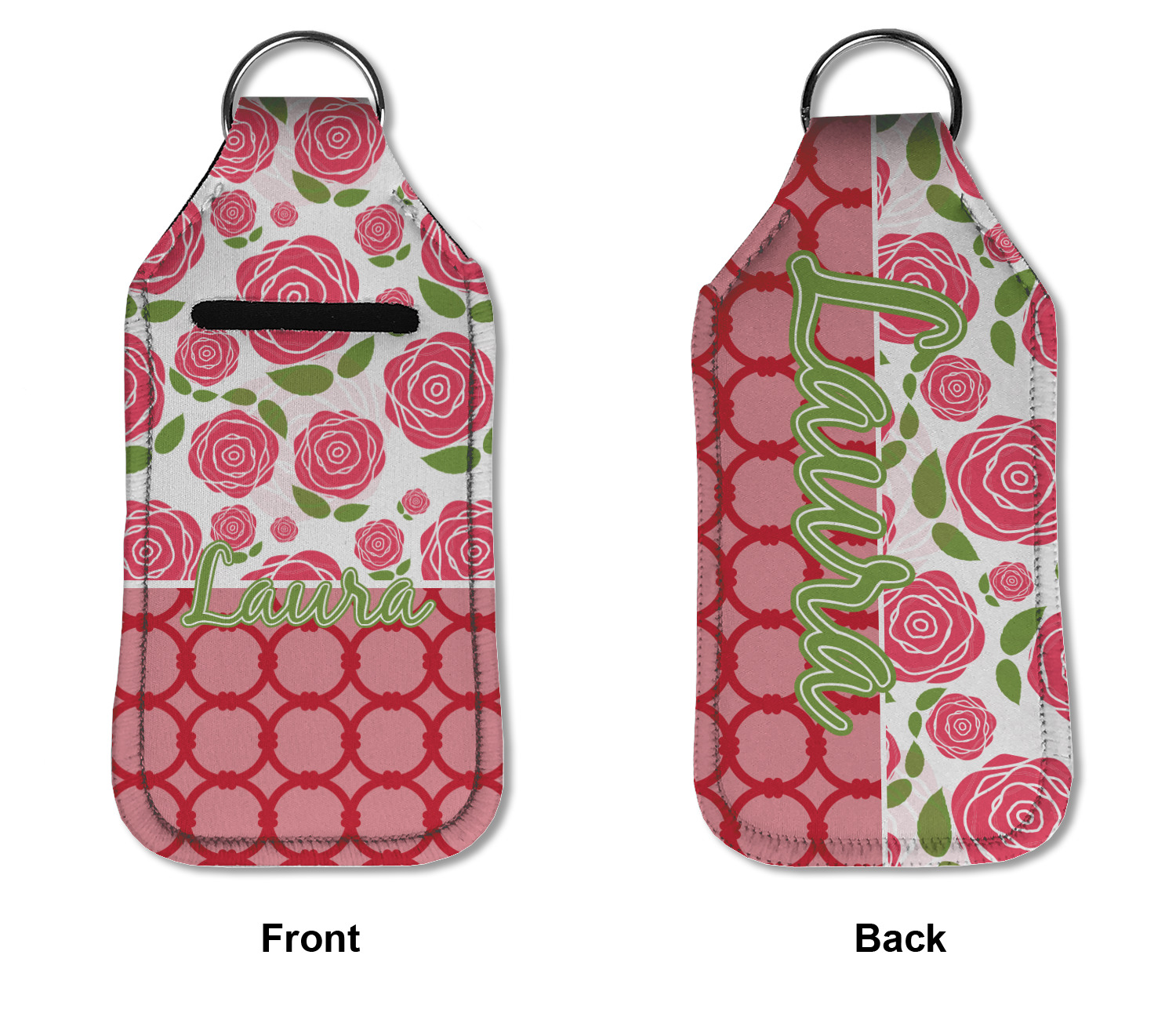 Each hand sanitizer holder comes with its own empty travel-sized, refillable hand sanitizer sure to fit snug in your customized sanitizer case! Our hand sanitizer cases are a durable, yet soft neoprene material sure to last any daily activities or travel agenda. Customize and personalize a hand sanitizer bottle holder with one of our two sizes - small (4.25" x 2.25") or large (5.5" x 2.5"). Each travel sanitizer holder comes with a keyring for attachment on bags, keys, or more!