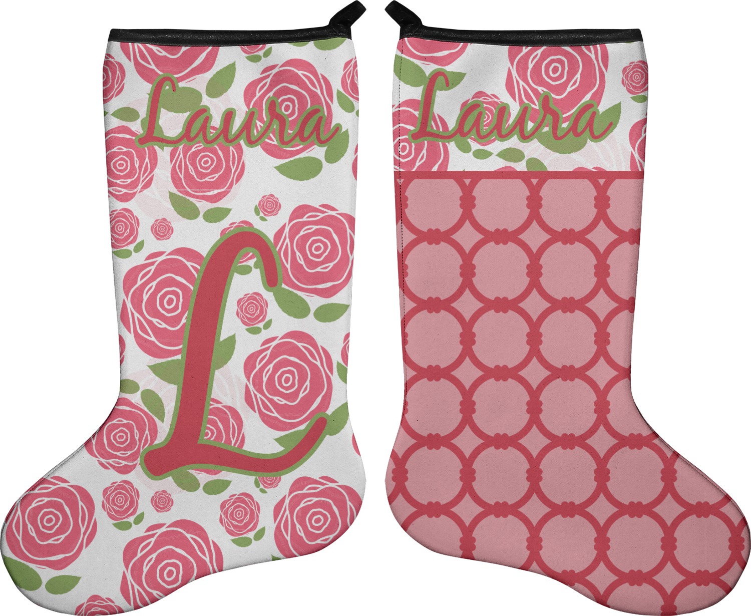 These 17" x 11" stockings are made of neoprene and have a black trim to give them a fantastic finished look. Your very own design is printed right onto the stocking, either single sided with white on the back or double sided where can use the same or different designs / patterns on the front and the back - the choice is yours. At the top of the stocking is a 2" loop for hanging.