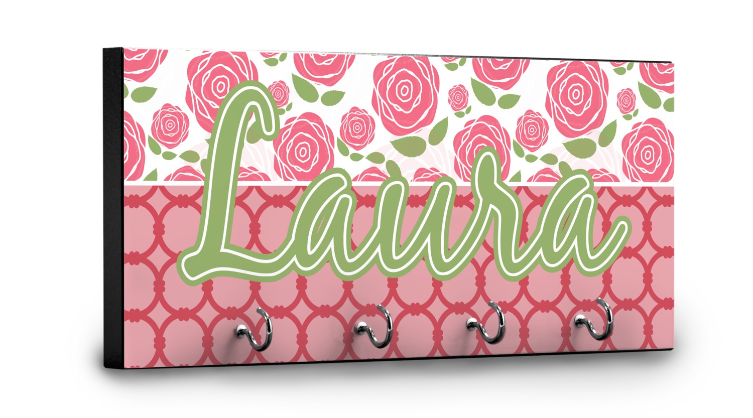 This 11" x 5" key hanger is made of sturdy wood and has four metal hooks lining the bottom. This is the perfect size for a family with several drivers. Not only can you hang keys on it though, but pet leashes and other small items. The board is black on the sides and back and is printed with the design of your choice on the front.
