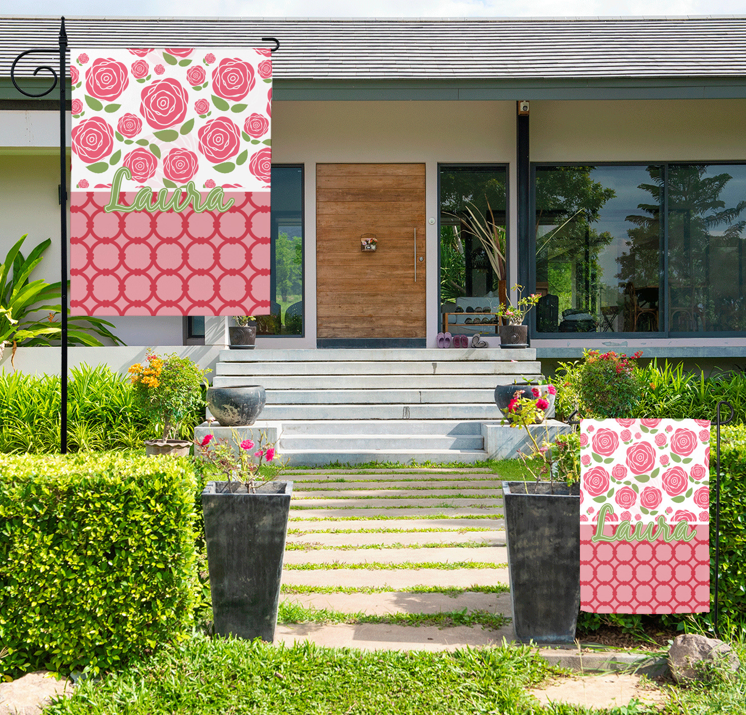 Decorate your front yard or your garden with one of our personalized garden flags! These garden flags will add a splash of color and personalization to any home's greenspace. Customize one with your name, favorite colors, and patterns, as a great addition to your home's exterior! Or, customize multiple seasonal flags and change them throughout the year!