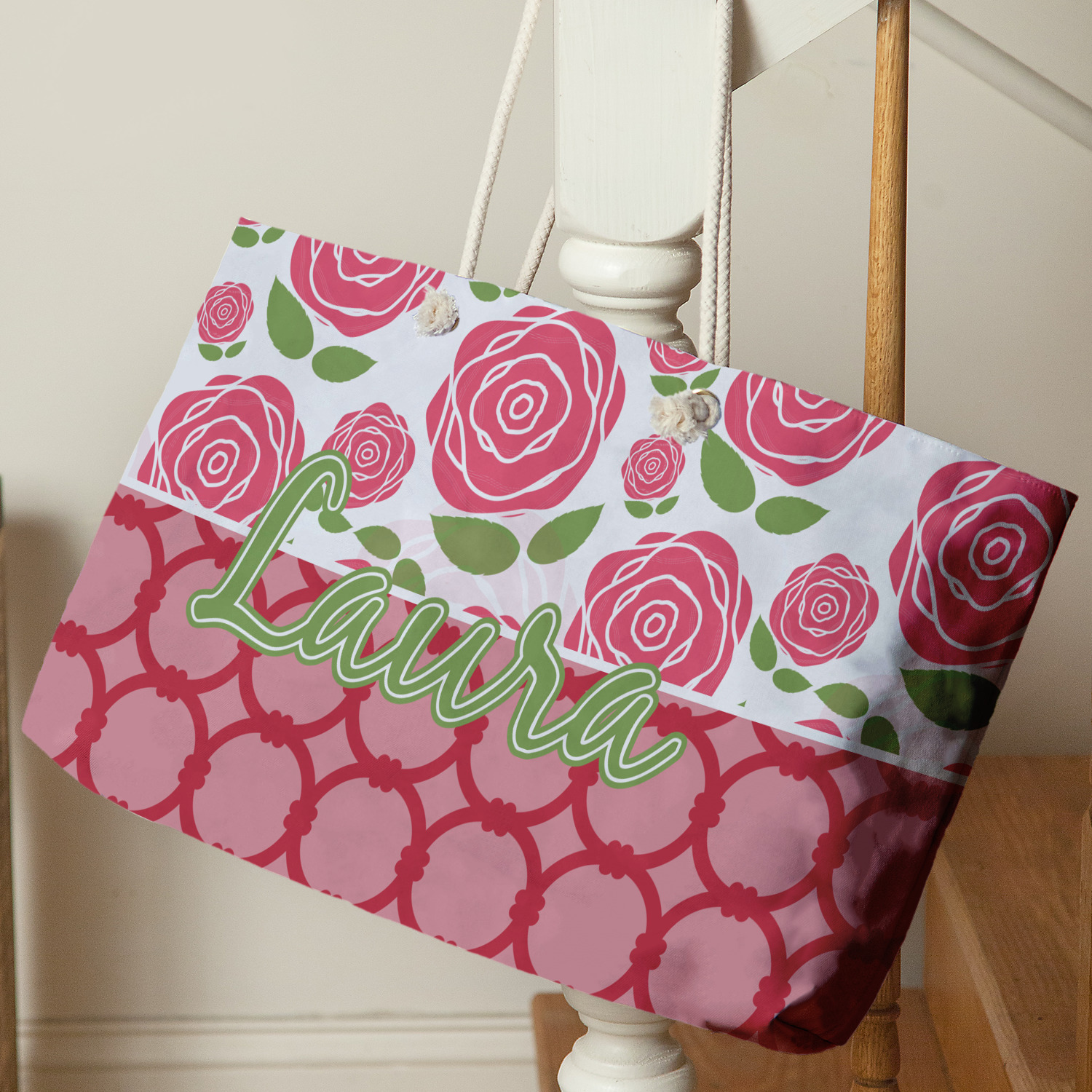 These weekender totes can be customized front and back. The totes are full all over print - so the choice of how background are endless - from beautiful floral or leaf patterns to geometrics or some classic Van Gogh artwork - the possibilities are endless. The totes can also be decorated with photos and logos.