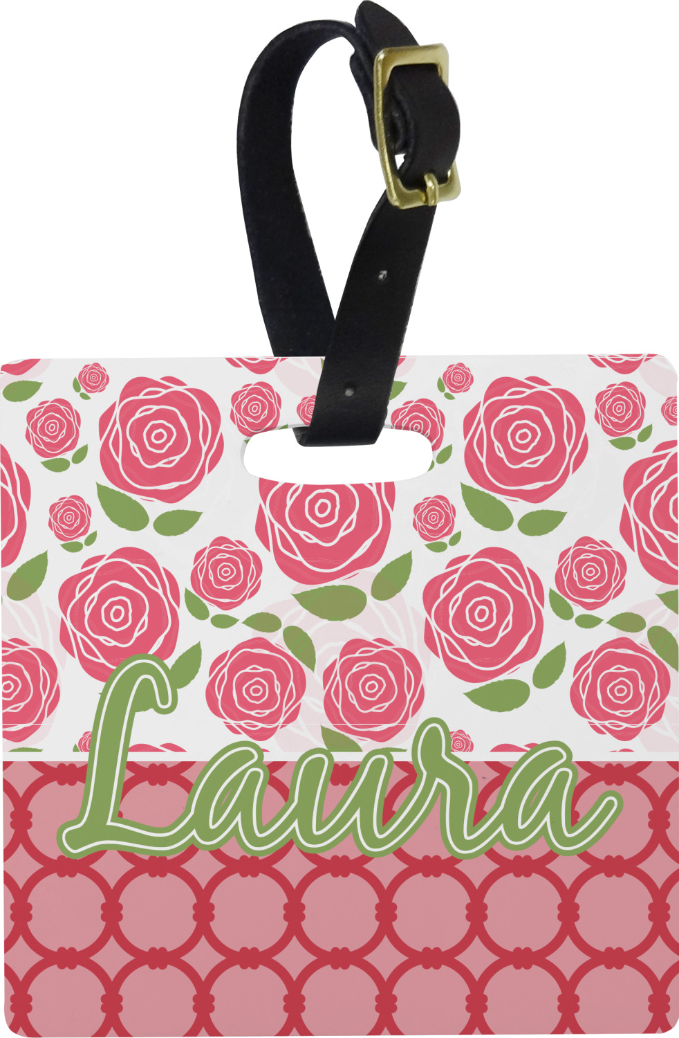 These personalized bag tags are sold in a variety of shapes, so that you may find the product that meets your vision exactly. We sell a round luggage tag, which measures at approximately 4" x 4". Our square luggage tag is about 3.5" x 3.5", while our rectangular version is 2.75" x 4 ".