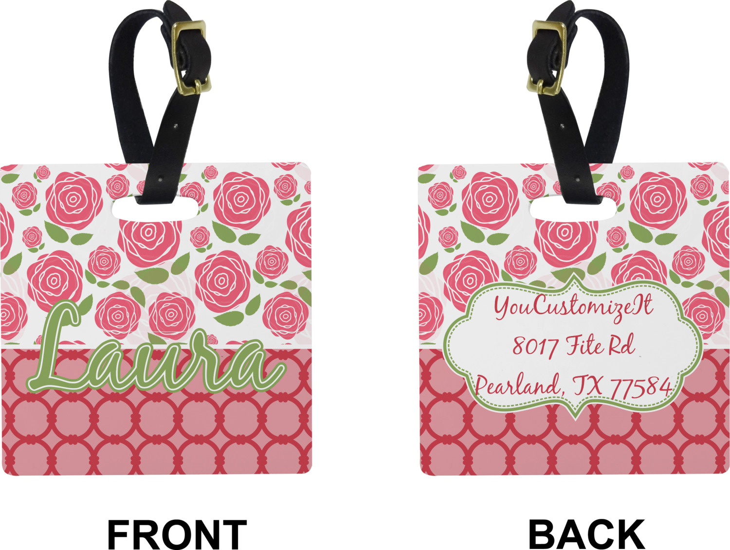 These cute luggage tags are made of a fiber-reinforced, UV-resistant plastic, making them waterproof and durable enough for both everyday use and the rugged adventures of any traveler! A leather strap with holes and a buckle is included with your purchase and can be used to attach your custom luggage tag to any suitcase, backpack, or duffel bag. You can design these travel tags as you wish; your customization will be displayed across the front, while the back will show as little or as much personal information as you want.