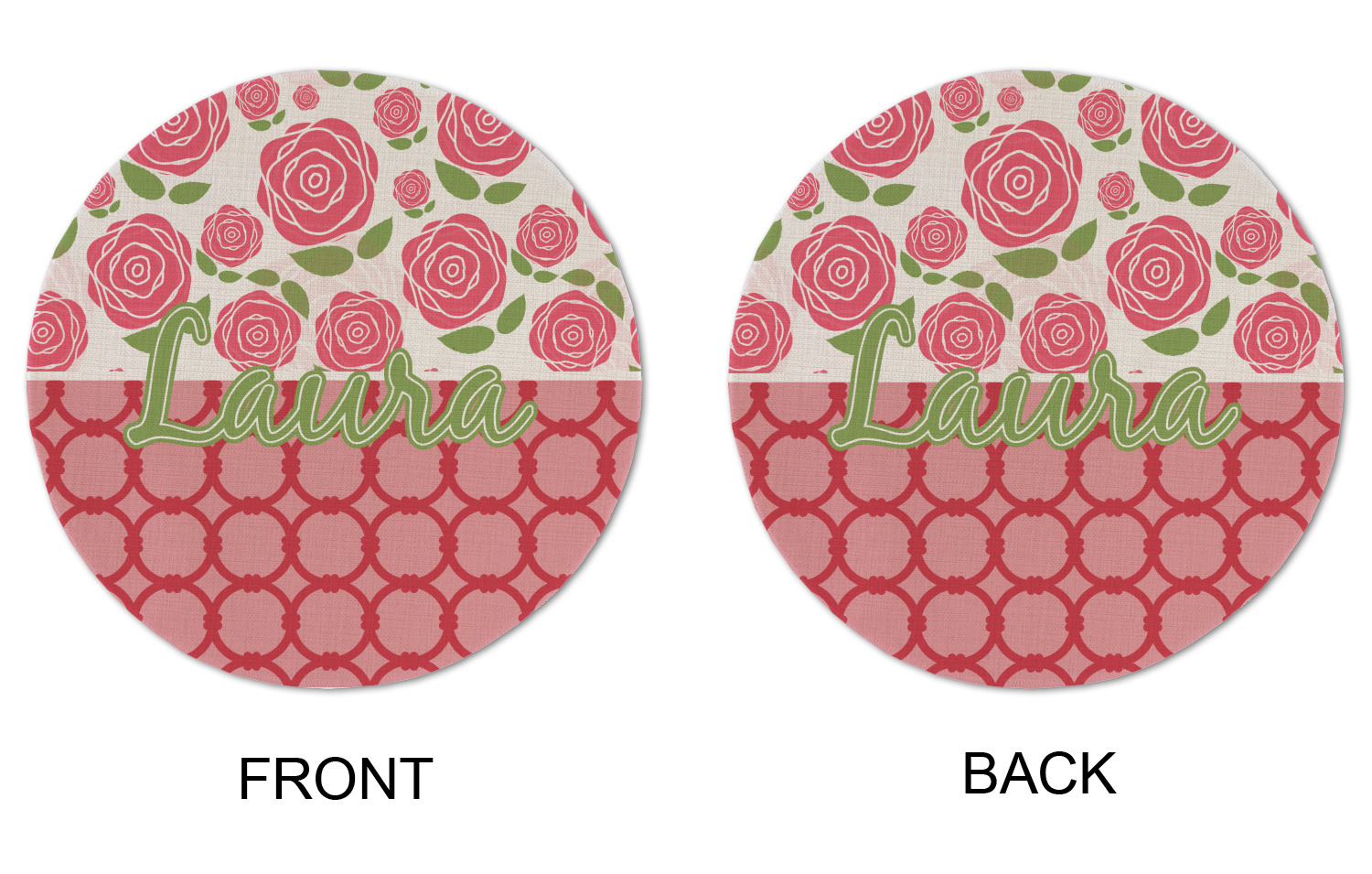 For our two pattern layout design, we chose to pair the rose pattern with our connected circles tone on tone design. We chose to personalize with just a name in one of our popular fonts (Black Jack) and we put a double stroke on the name.