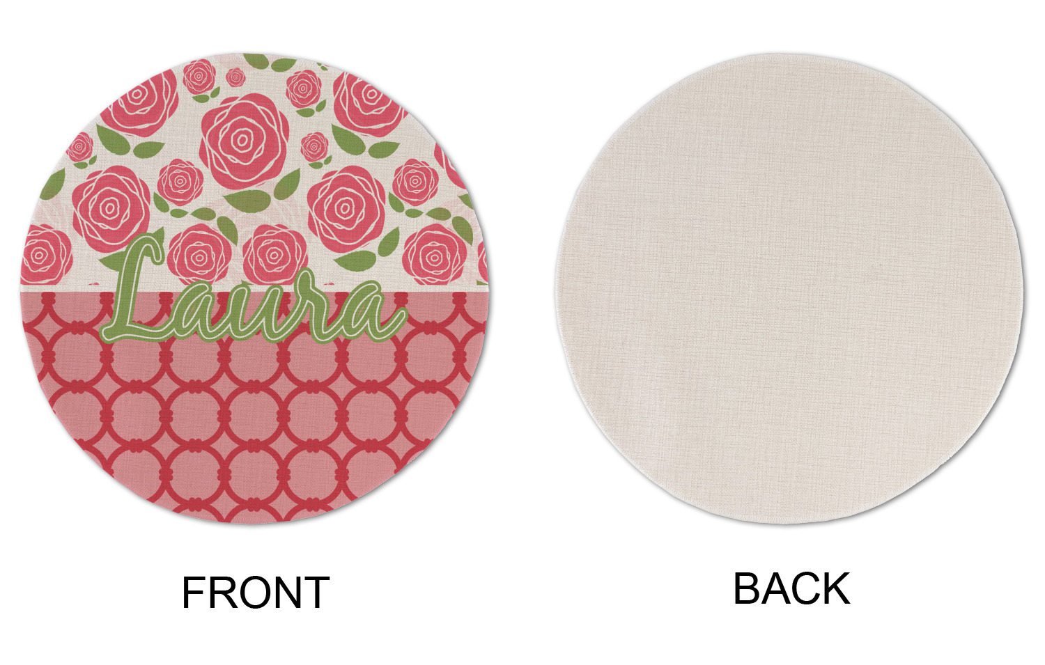 For our two pattern layout design, we chose to pair the rose pattern with our connected circles tone on tone design. We chose to personalize with just a name in one of our popular fonts (Black Jack) and we put a double stroke on the name.
