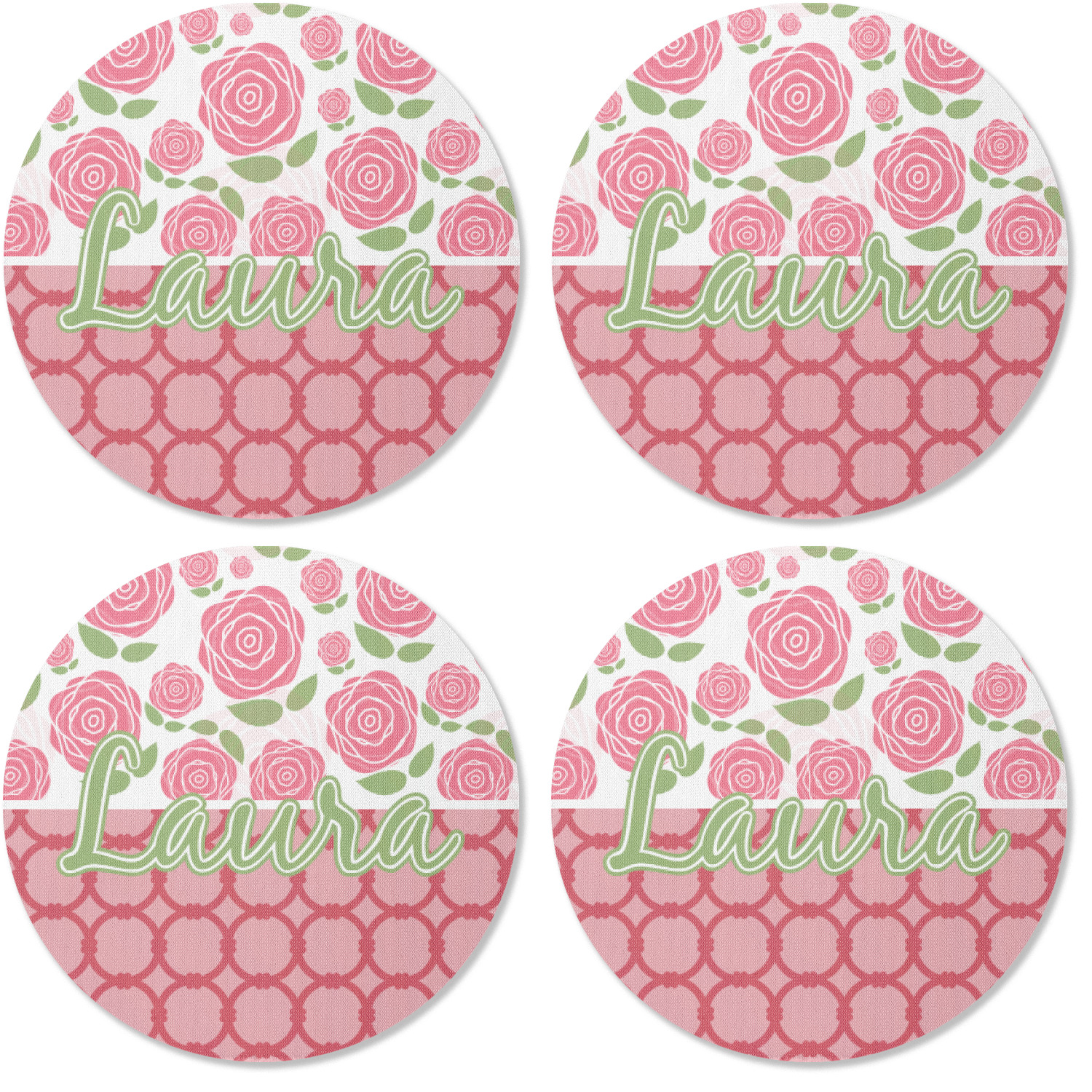 These drink coasters have a smooth, polyester top and a textured, rubber backing on its bottom. The non-slip rubber backing underneath works to keep any spills at bay. At 4 by 4 by 0.25 inches thick, these custom coasters are a suitable size for most drinkware. Your personalization is displayed atop the face of the cup coaster. We sell these rubber coasters in two different shapes: square and round. You can buy each shape as singulars or as a set of 4.