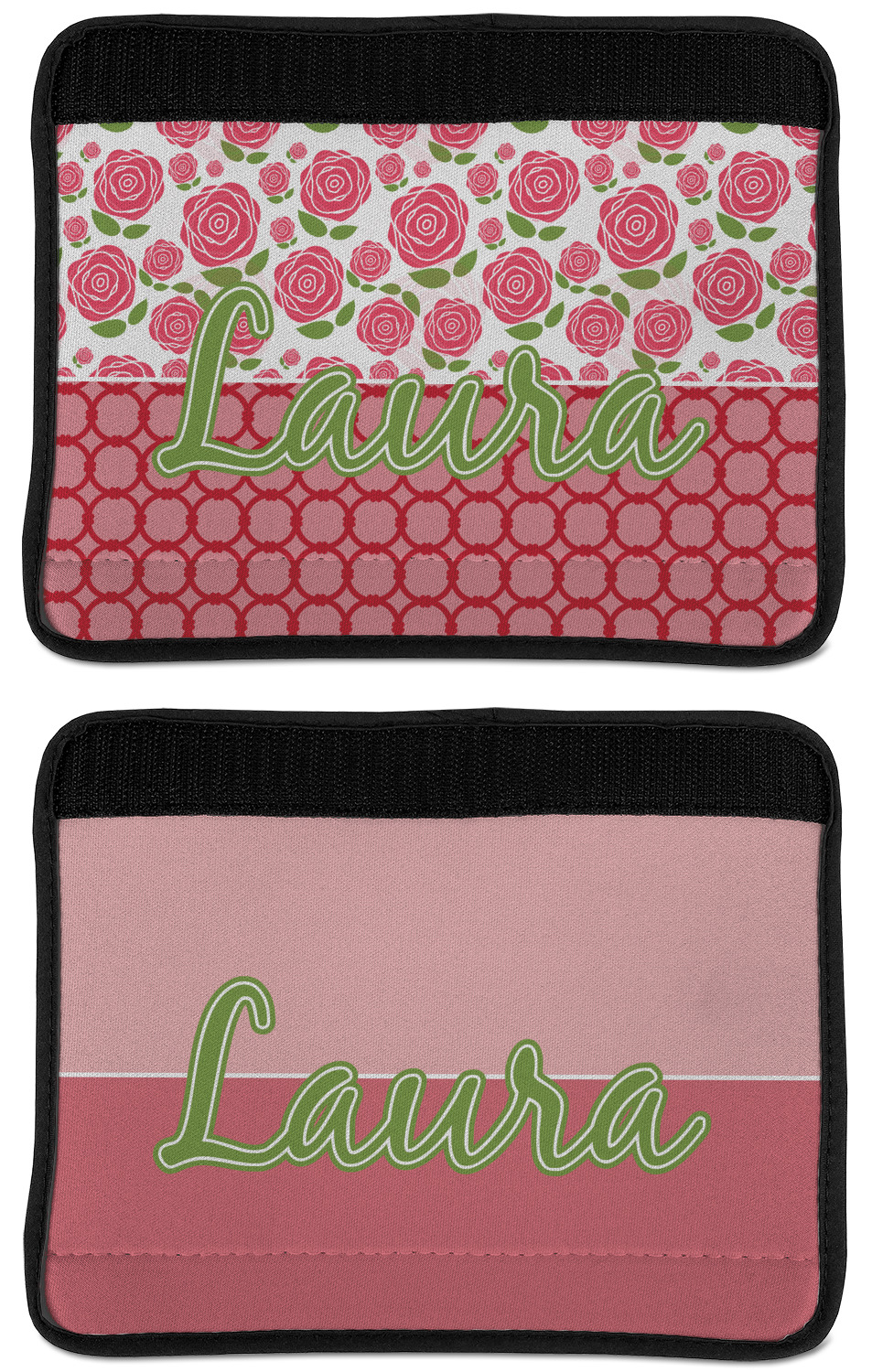 Made from neoprene, our seat belt strap covers wrap around the belt itself and have a Velcro tab for easy attachment and closure. The belt's edges are trimmed with a black polyester for a secure finish. Each cover is 9.5 by 7 inches when open and 9.5 by 2.5 inches when closed. We print your personalized design on the face of the seat belt pad.