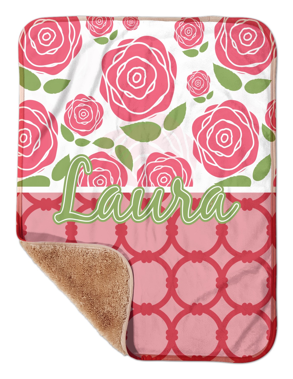 These toddler blankets are made of two different materials; the front side is made of a velvety, minky-like material that displays your customization and is perfect for a baby's delicate skin. The underside is crafted from a fluffy, sherpa fleece, and bears a classy, tan color. The dual texture gives your baby added comfort, as both sides are incredibly soft and plush. The corners of this blanket are rounded, and the ribbing of the blanket is a tan color, which complements the sandy color of the sherpa fleece. At approximately 30 by 40 inches, this custom baby blanket is the perfect size for babies and toddlers.