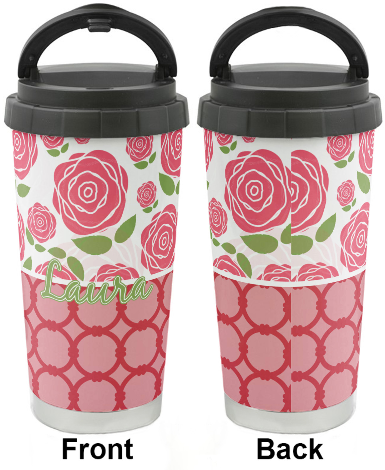 This sleek and tapered 16 oz stainless steel travel cup is a perfect fit in the hand. With the strip of visible stainless steel on the bottom, you'll be feeling classy!
