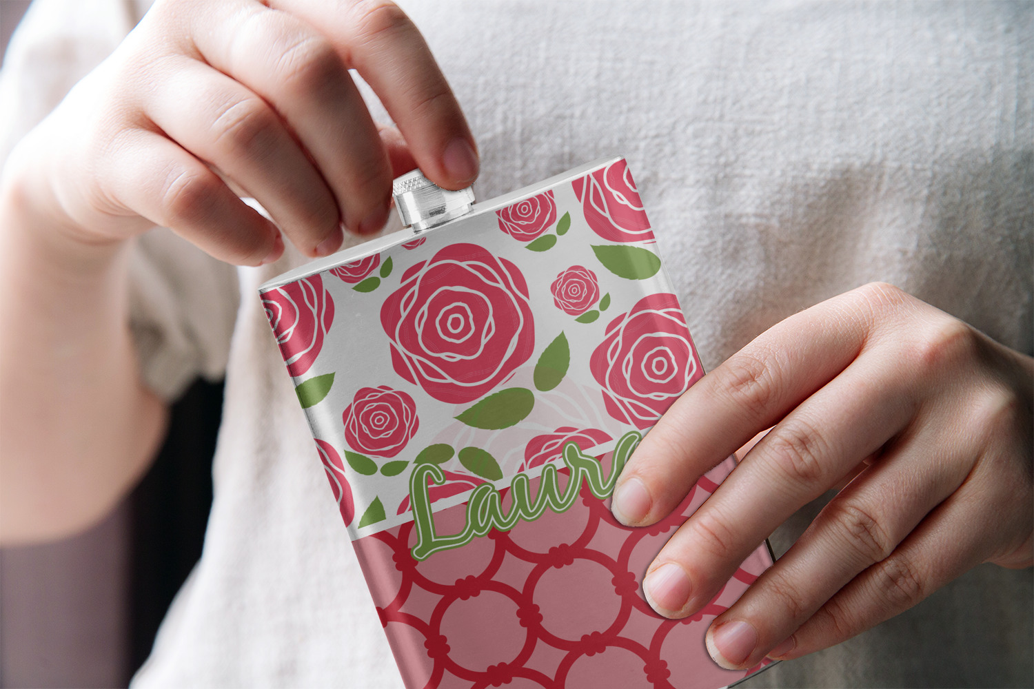 For our two pattern layout design, we chose to pair the rose pattern with our connected circles tone on tone design. We chose to personalize with just a name in one of our popular fonts (Black Jack) and we put a double stroke on the name.