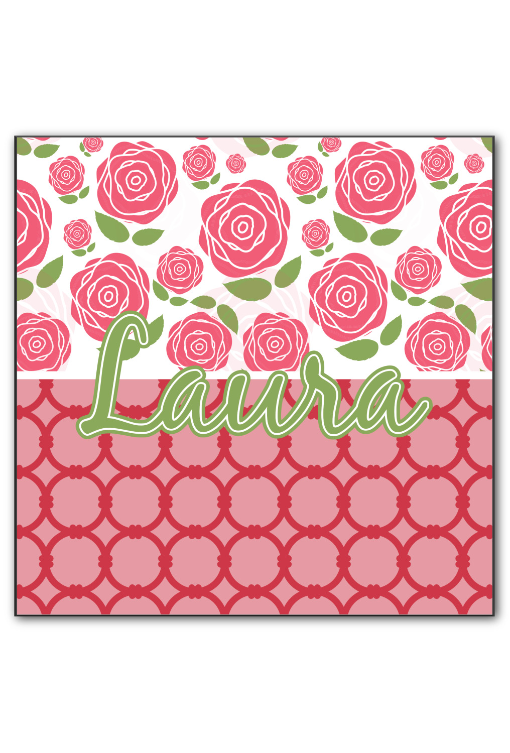 For our two pattern layout design, we chose to pair the rose pattern with our connected circles tone on tone design. We chose to personalize with just a name in one of our popular fonts (Black Jack) and we put a double stroke on the name.