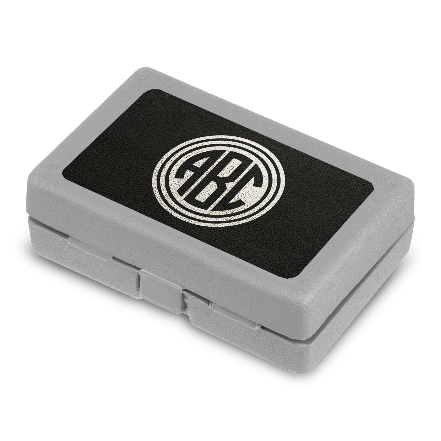 In a tri-fold hard shell case which measures 6" wide, 4" deep and 2" tall, this kit is the perfect size to keep in a desk, garage drawer, or anywhere else in the house. The snap closure keeps it securely closed to ensure the tools do not fall out. With the black faux leather on the outside engraved with your choice of personalization it will be easier to ensure it stays yours by being customized just for you!