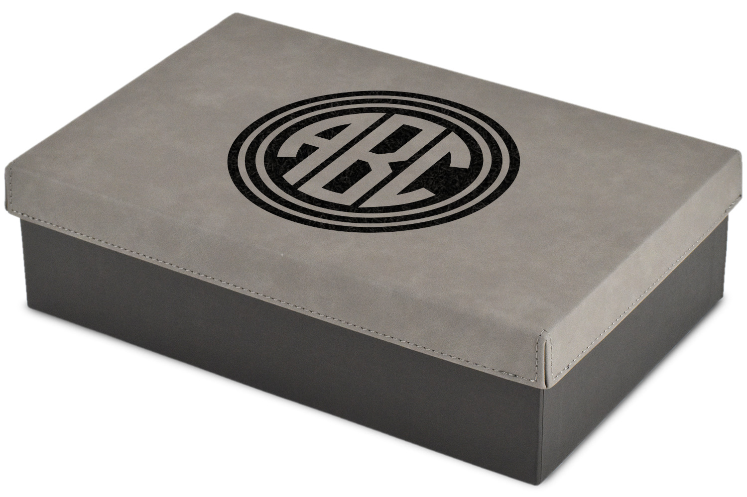 These gift boxes are available in 3 different sizes to accommodate various sized gifts. Available in gray as a neutral color for any occasion as well as to showcase your design boldly. Engraved with a laser this high quality paper board and faux leather gift box is unique and makes any gift stand out.