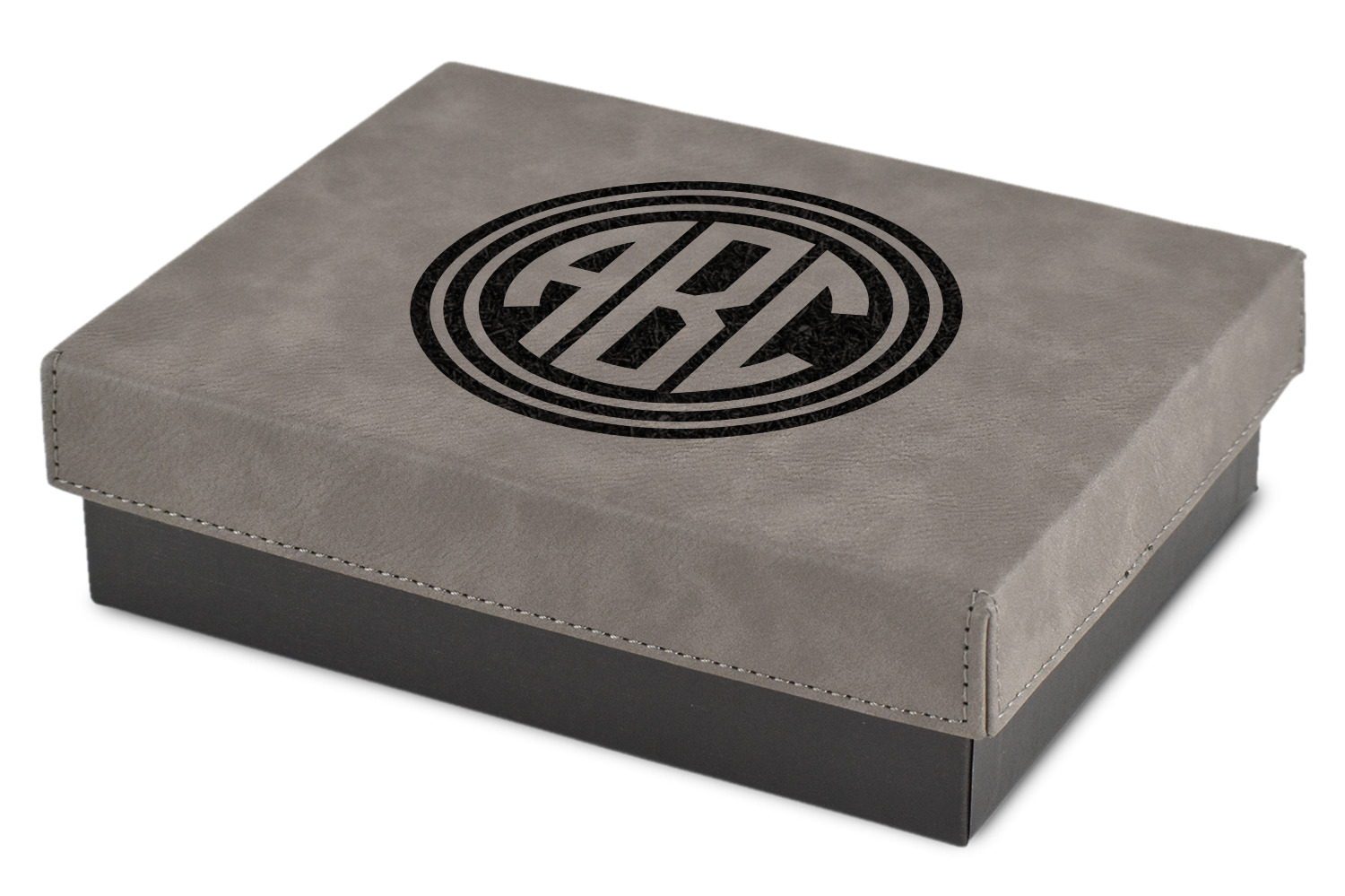 These gift boxes are available in 3 different sizes to accommodate various sized gifts. Available in gray as a neutral color for any occasion as well as to showcase your design boldly. Engraved with a laser this high quality paper board and faux leather gift box is unique and makes any gift stand out.